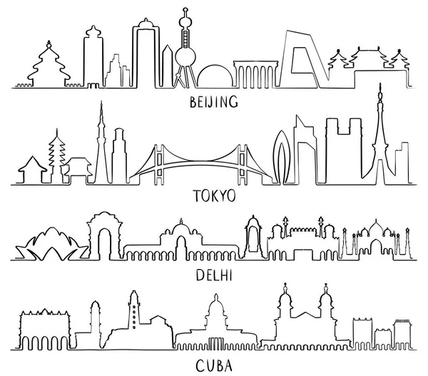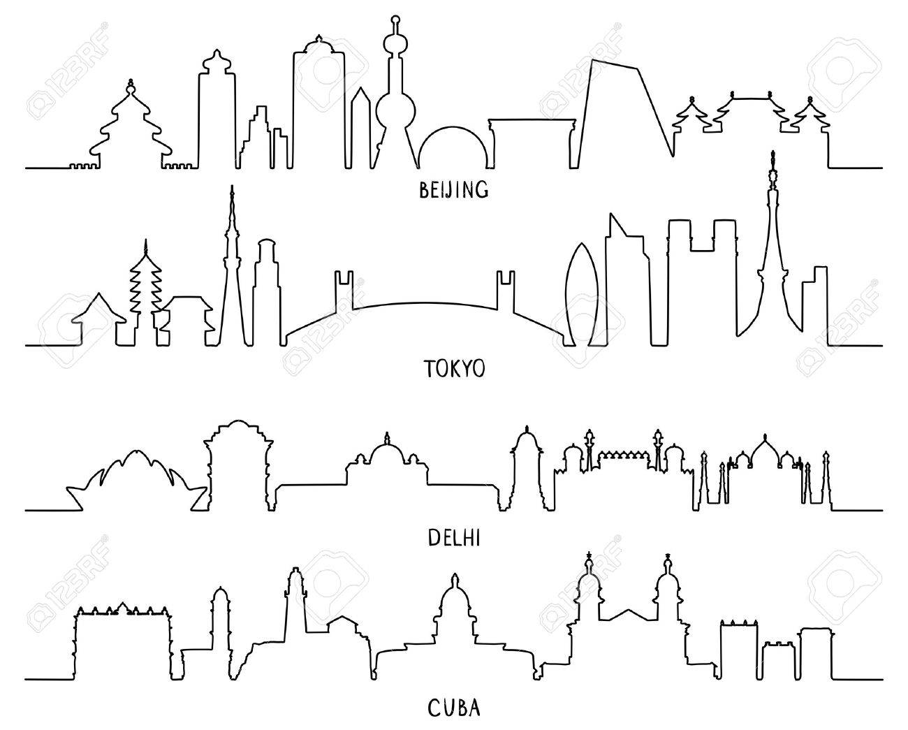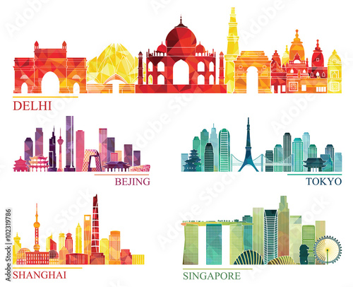Skyline Detailed Silhouette Set Delhi Beijing Tokyo Shanghai Singapore Vector Illustration Buy This Stock Vector And Explore Similar Vectors At Adobe Stock Adobe Stock