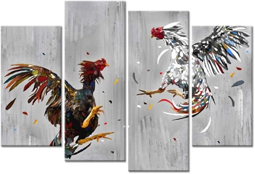 Qidingusa Animal 4 Pieces Canvas Wall Art Cock Fighting Picture Painting Rooster Art Print Rustic Chicken Country Kitchen Home Decor 30x60x2 30x80cmx2 Unframed Zhaerlenerin