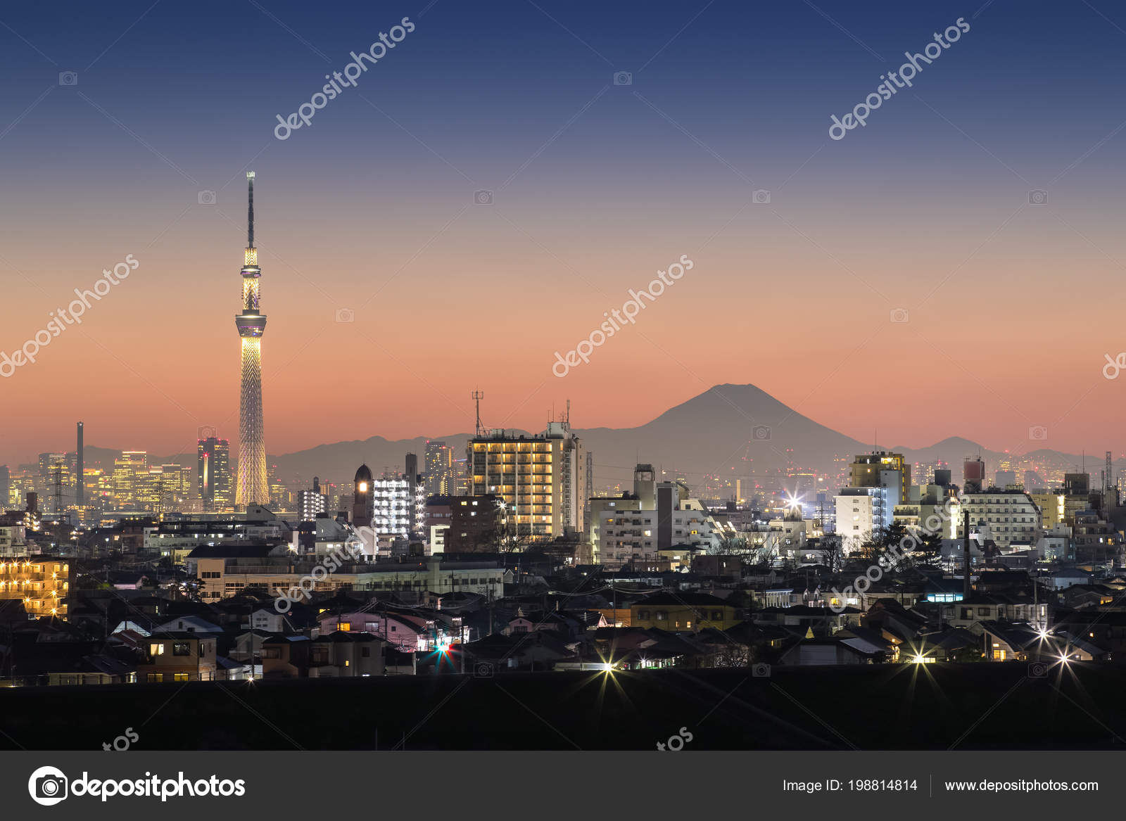Tokyo Night View With Mtfuji And Tokyo Skytree Stock Photo Download Image Now Istock