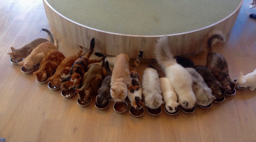 Cat cafe nyankoto was the first cafe we visited in tokyo and it stands out luckily for all the right reasons. There are 25 cats in this cafe of a variety of ages sizes breeds and friendliness. A cat cafe is a theme cafe whose attraction is cats that can be watched and played with.