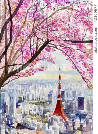 Tokyo Japan Tokyo Tower Cherry Blossom April Spring By Kenichi Funaki Photo Stock Snapwire