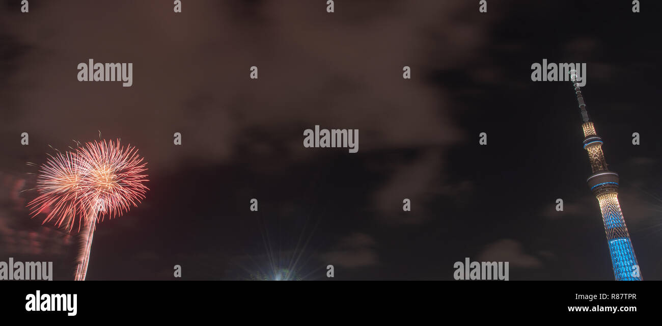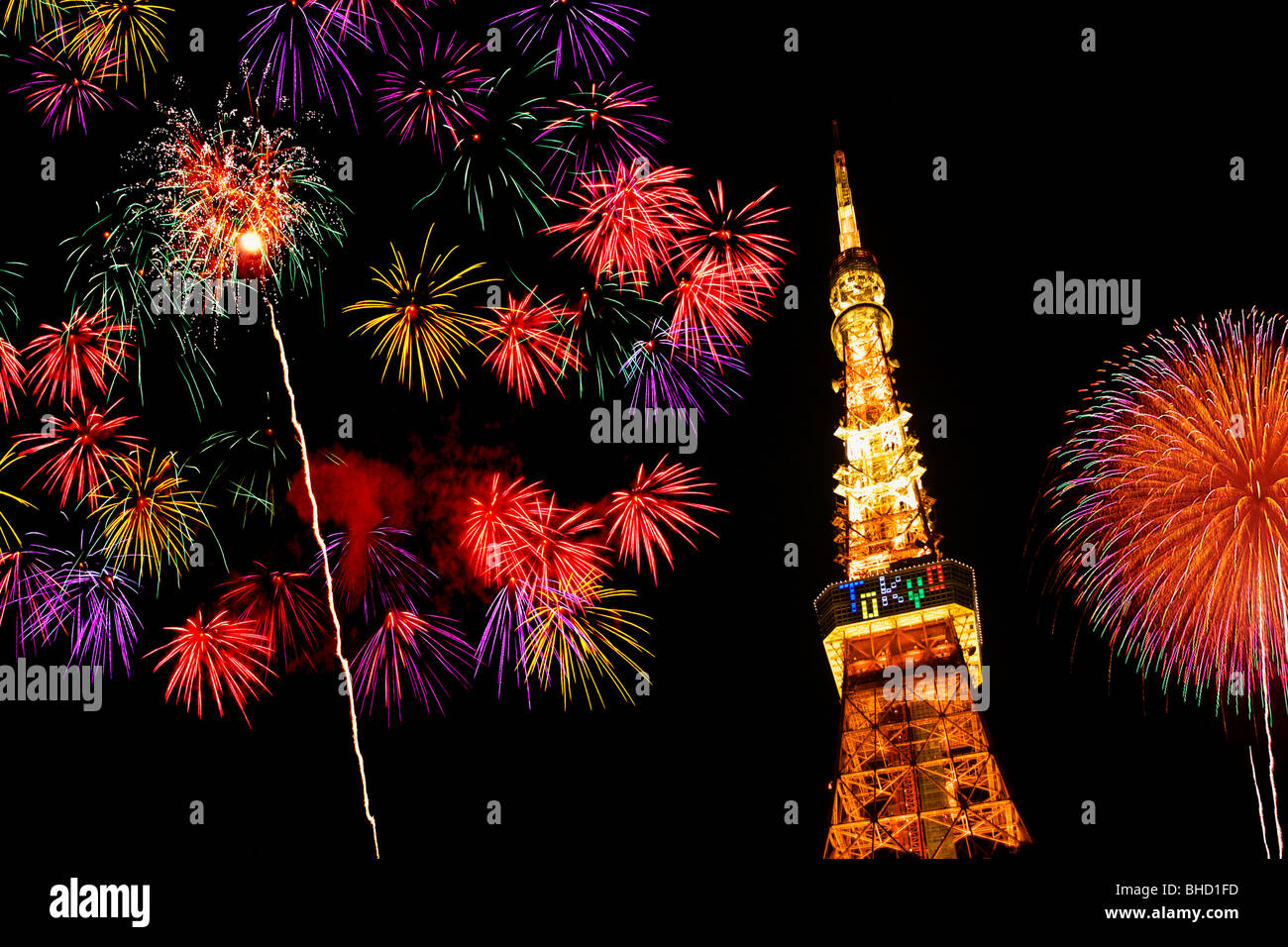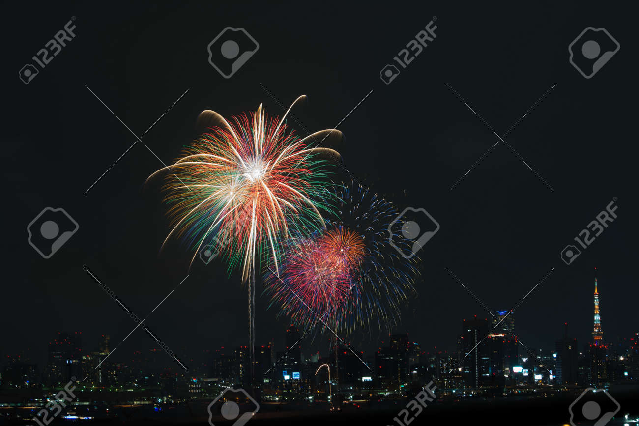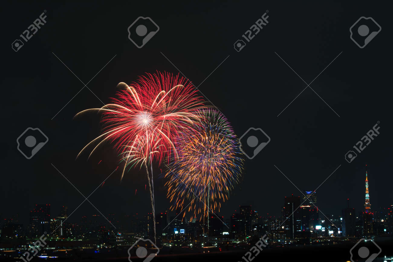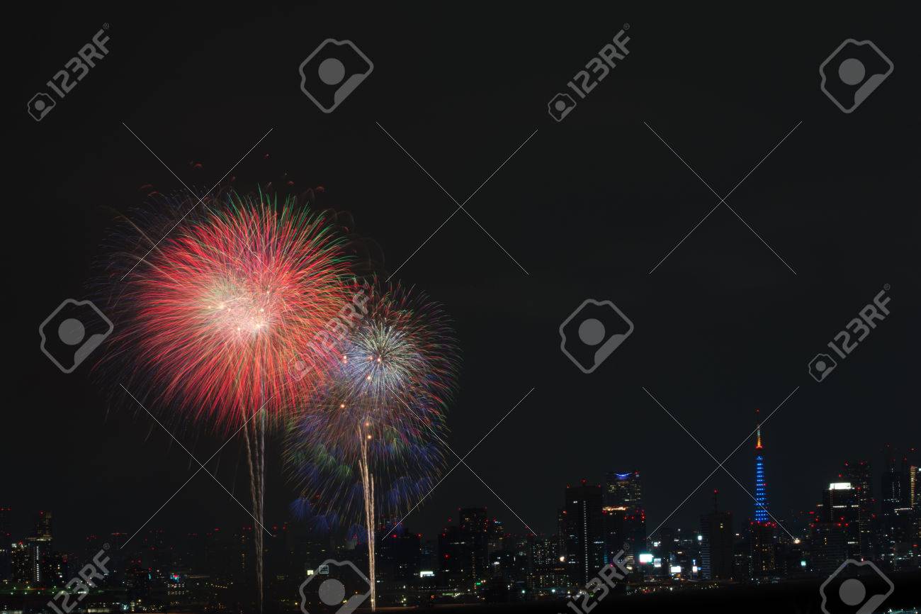 Fireworks And The Night View Of Tokyo Tower Minato Ward Tokyo Prefecture Japan High Res Stock Photo Getty Images