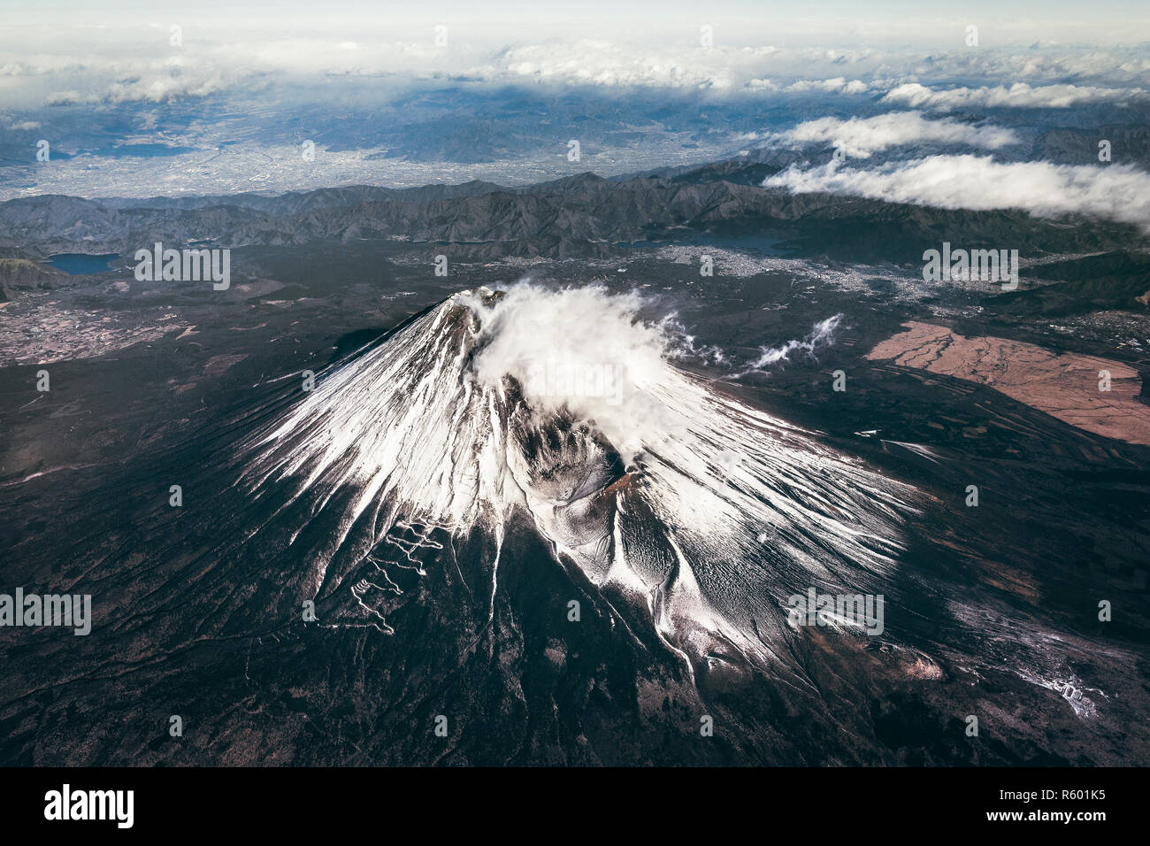 Sacred Mount Fuji Fujiyama In Clouds Japan Beautiful Sacred Mount Fuji Fujiyama In Clouds On Blue Sky Background Japan