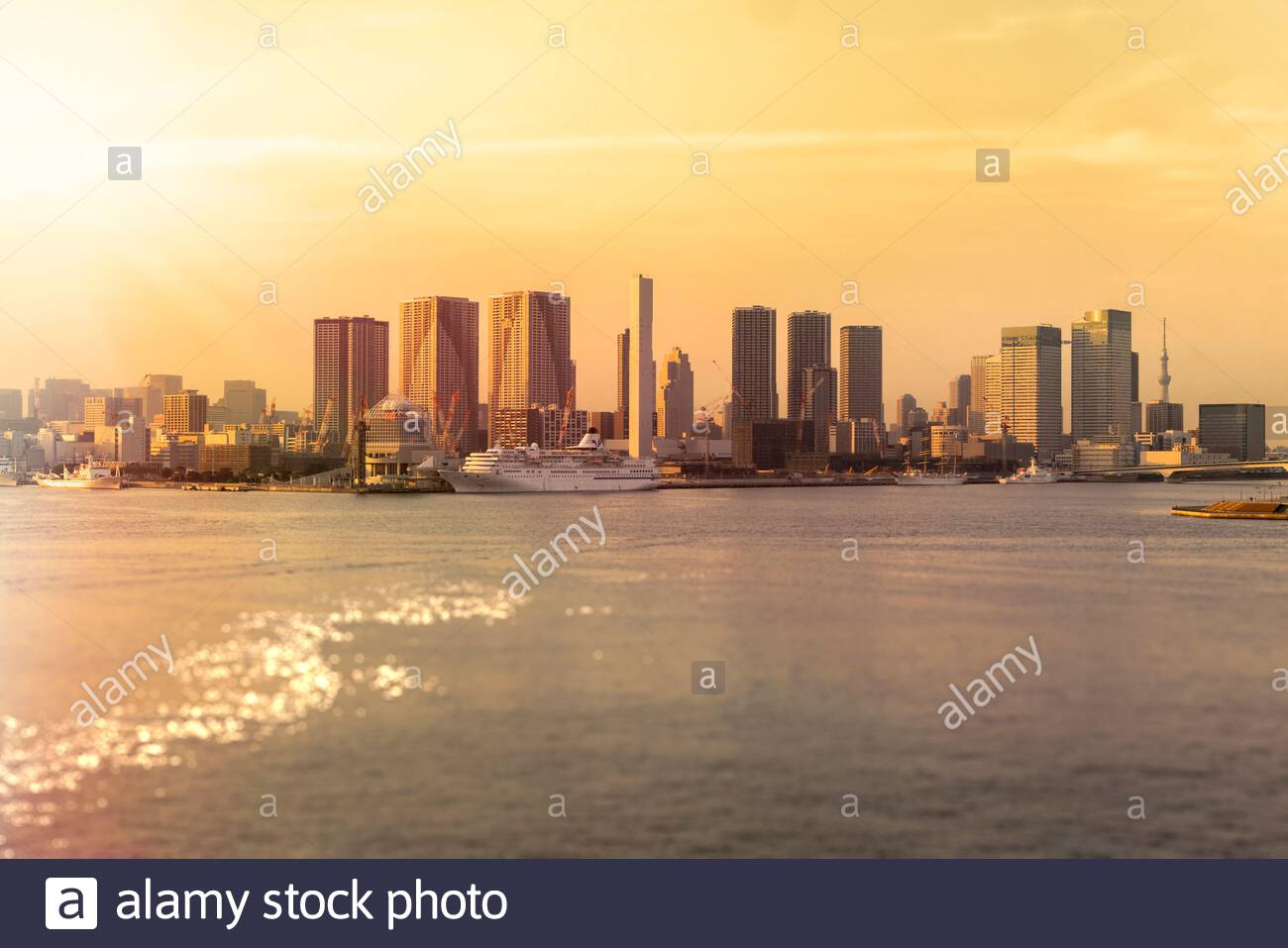 Panoramic View From Odaiba Island To Tokyo Skyscrapers On The Coast Of Tokyo Bay Japan Stock Image Image Of Beach Architecture 156922753