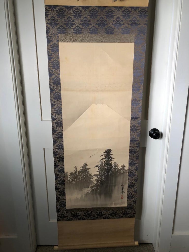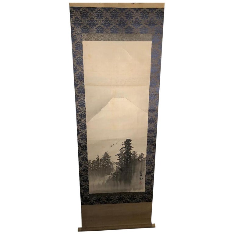 Japanese silk painting mount fuji. Superb japanese painting on silk mt fuji water trees boats scene signed stamped. Antique kawabata gyokusho mount fuji japanese landscape painting hanging scroll. Icon mount fuji splendor japanese fine hand painted silk scroll located in shelburne vt japan an eerie sense of great age and splendour is what you might feel when you gaze at this beautiful scroll of mount fuji.