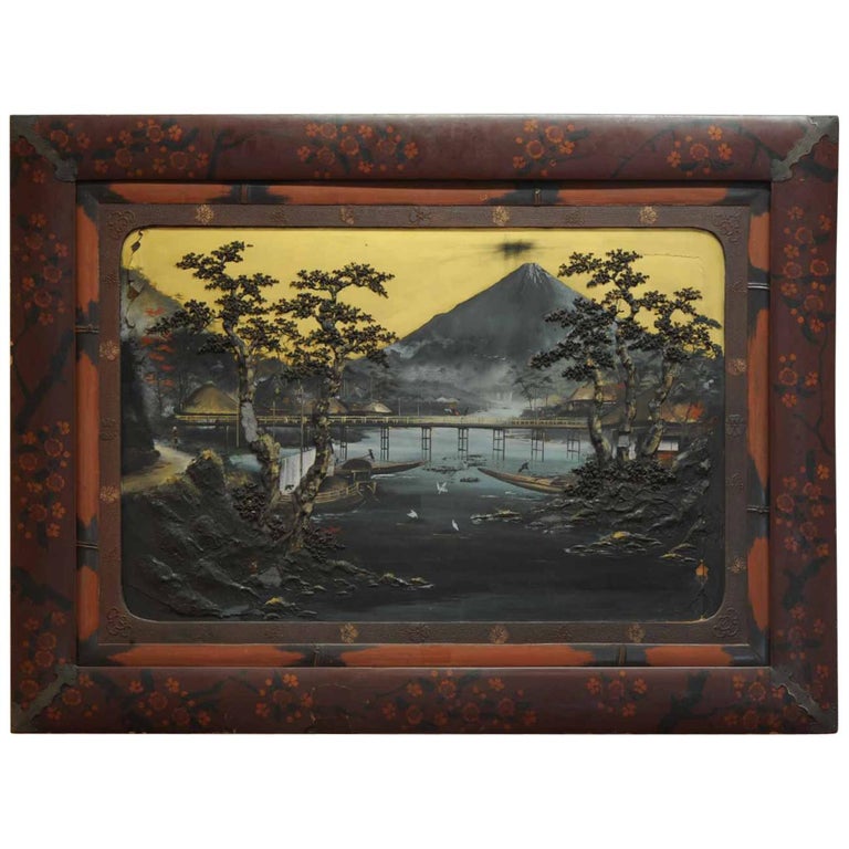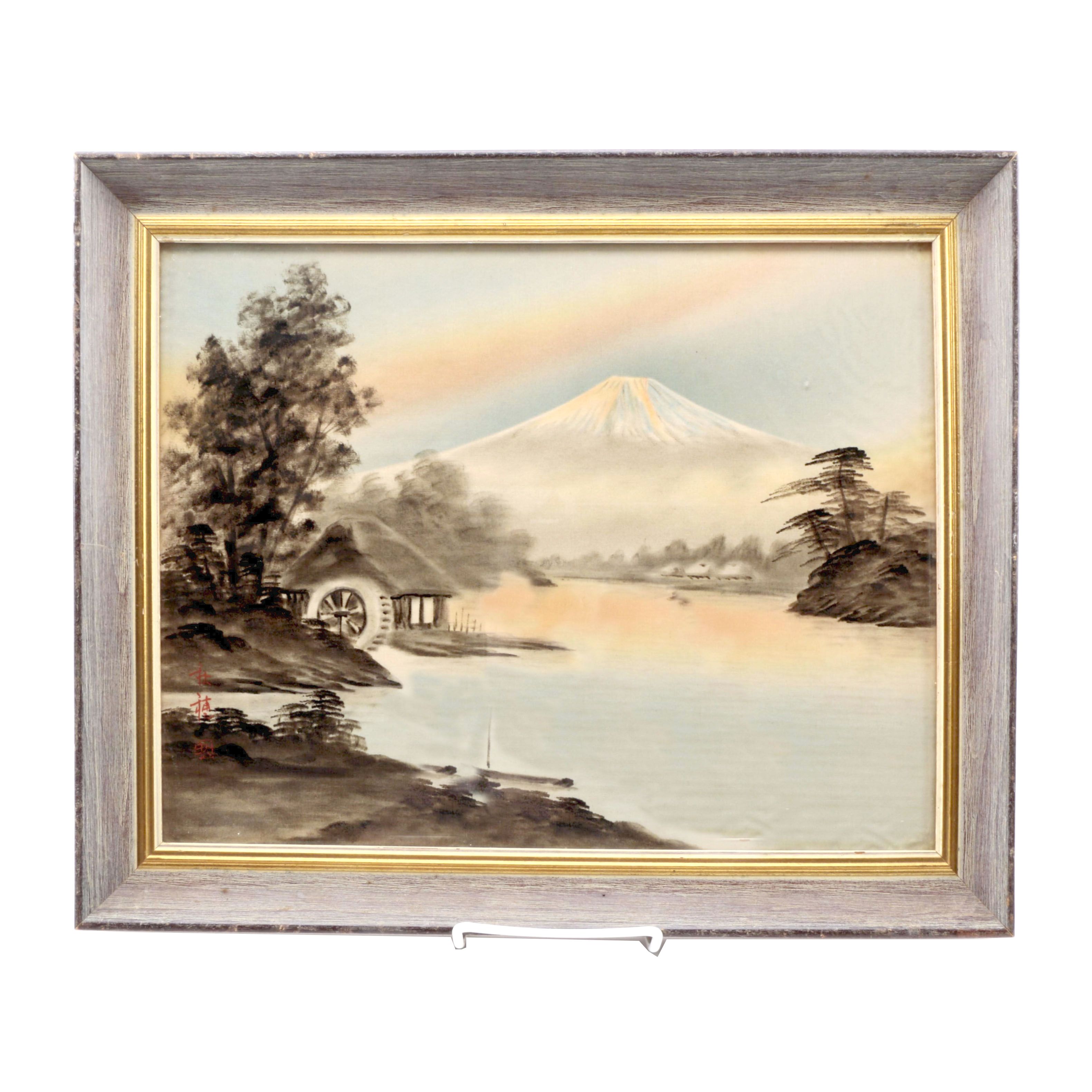 It measures 16 x 13 14 sight and the frame measures 17 34 x 15. Landscape with mount fuji in the distance 1908 painting. View it on ebay.