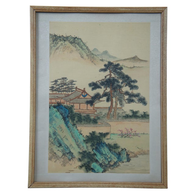 Mid Century Hand Painted Japanese Mt Fuji Pagoda Landscape Paintings On Silk A Pair Chairish