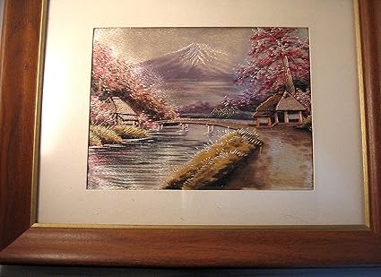 Amazon Com King Silk Art 100 Handmade Embroidery Japanese Cherry Blossoms Over Mount Fuji Chinese Print Framed Landscape Painting Gift Oriental Asian Wall Art Decor Artwork Hanging Picture Gallery 37082wfl Posters Prints