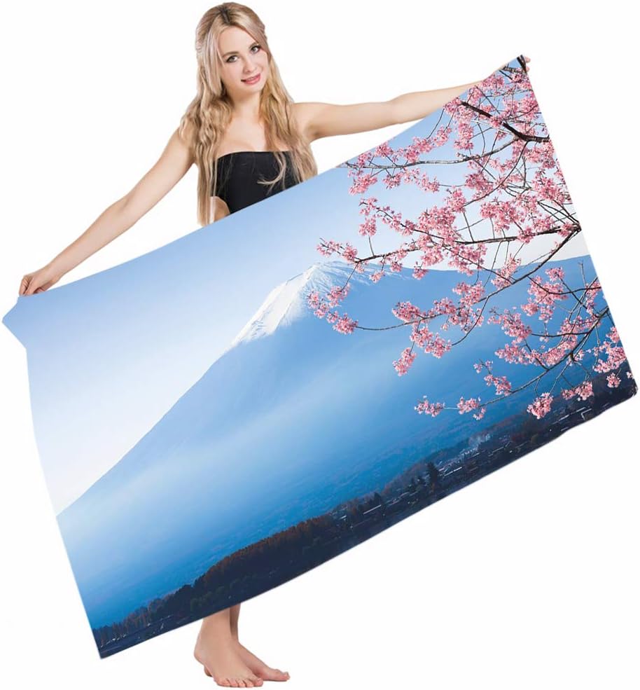 Amazon Com Mugod Beach Towel Bath Towels Landscape Japan Asian Desgin Mountain Fuji Cherry Blossoms Lake Kawaguchiko Yoga Golf Swim Hair Hand Towel For Men Women Girl Kids Baby 64x32 Inch Home Kitchen