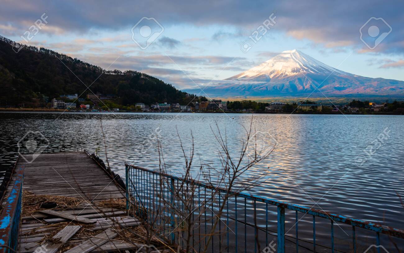 Panorama Image Of Mount Fuji And Pier Lake Kawaguchi In Kawaguchiko Stock Photo Picture And Royalty Free Image Image 123736736