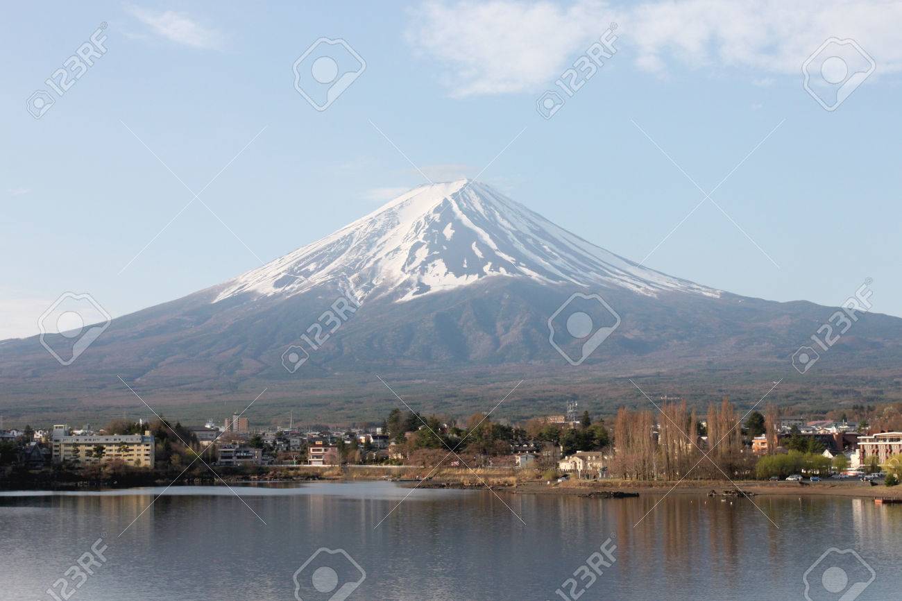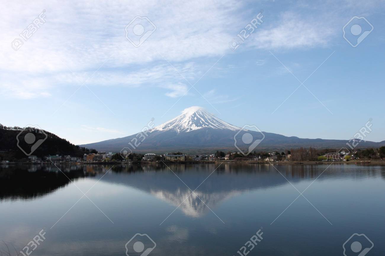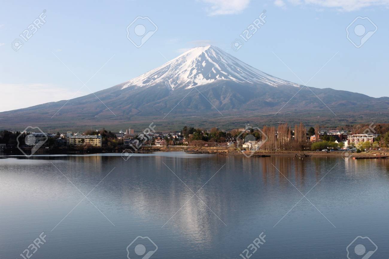 Panorama View Of Mountain Fuji With Reflection At Lake Kawaguchiko Stock Photo Picture And Royalty Free Image Image 46780243