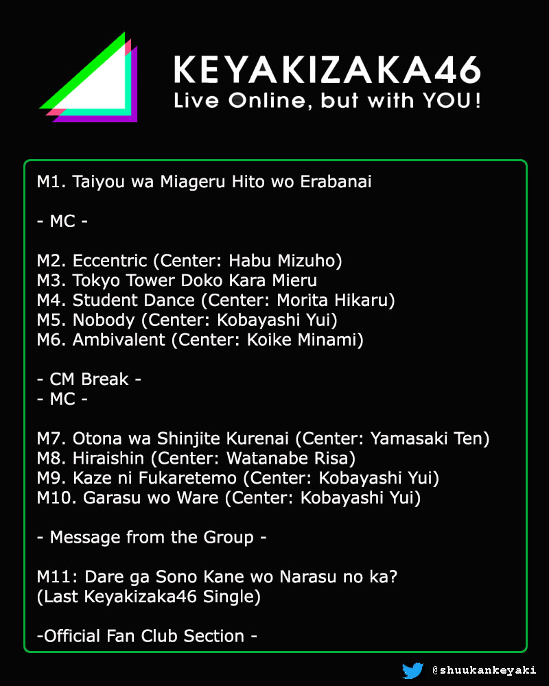 Keyakizaka46 Vietnam Fanpage Setlist Keyakizaka46 National Tour Hyogo 1st Day Overture M1 Eccentric M2 Getsuyoubi No Asa Skirt Wo Kirareta M3 Tokyo Tower Wa Doko Kara Mieru Dance Section