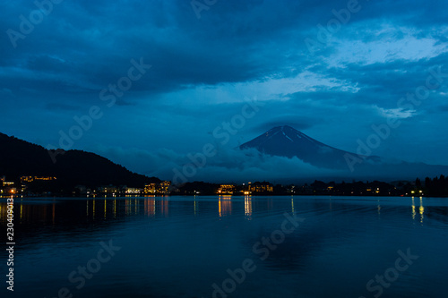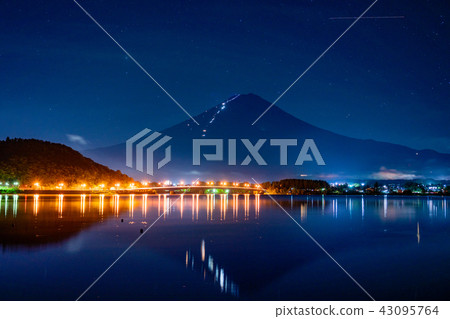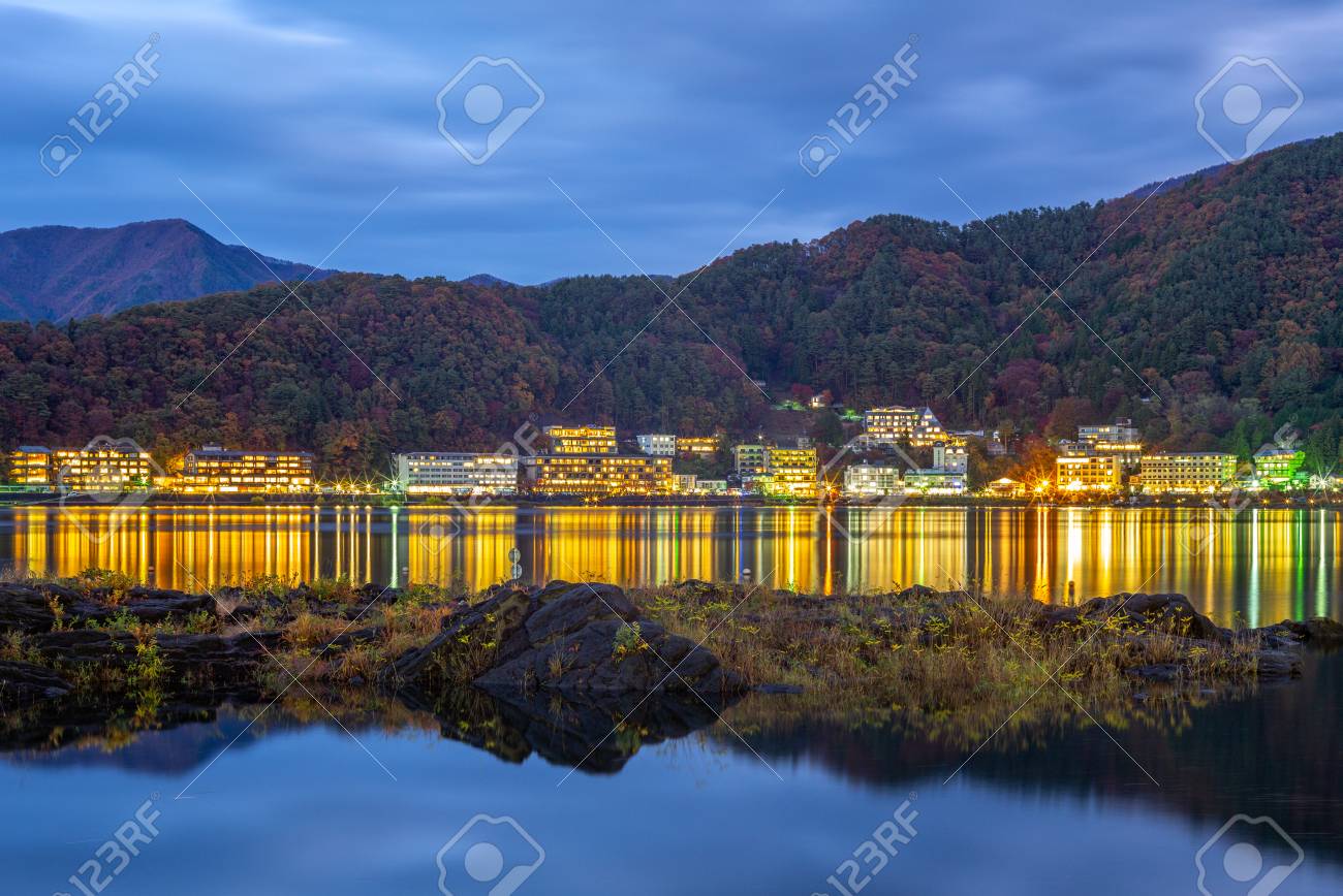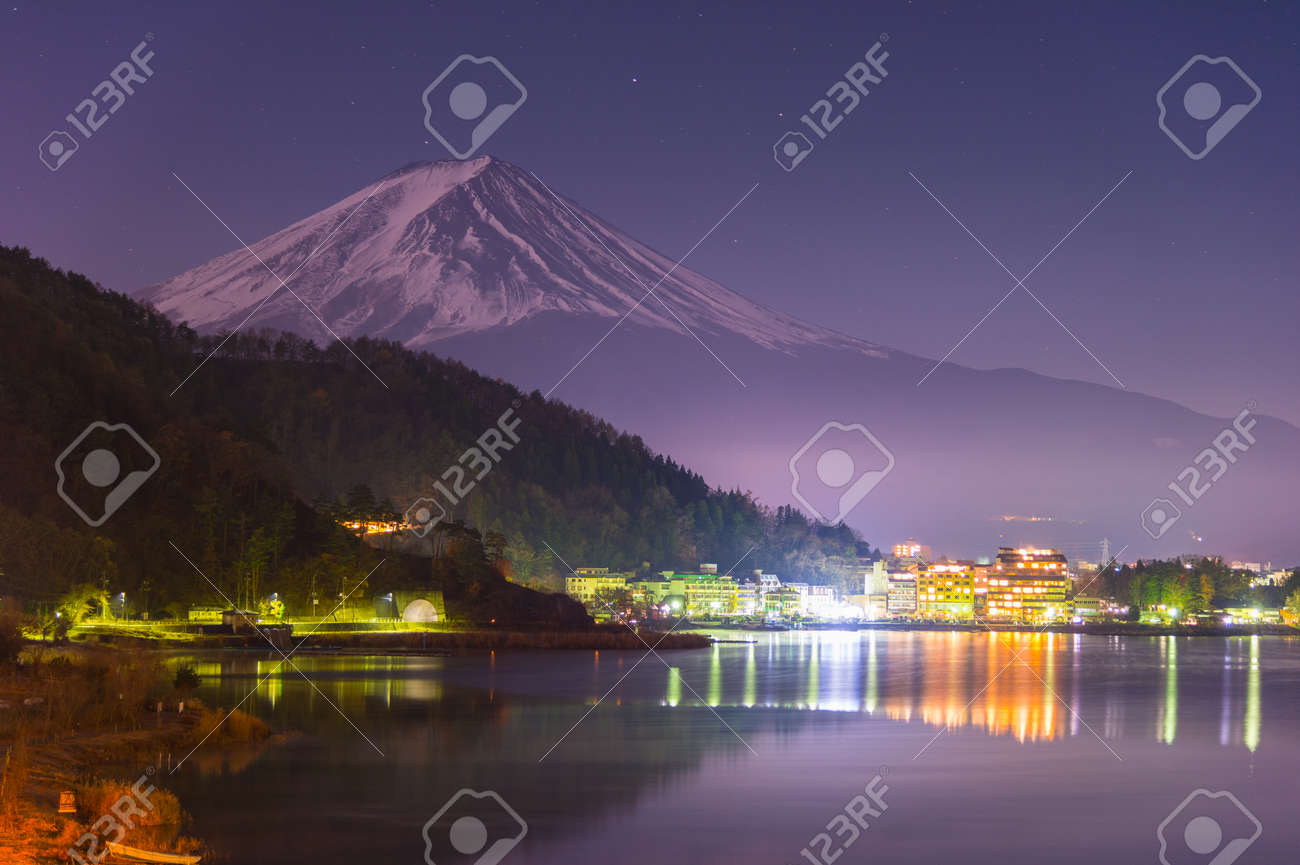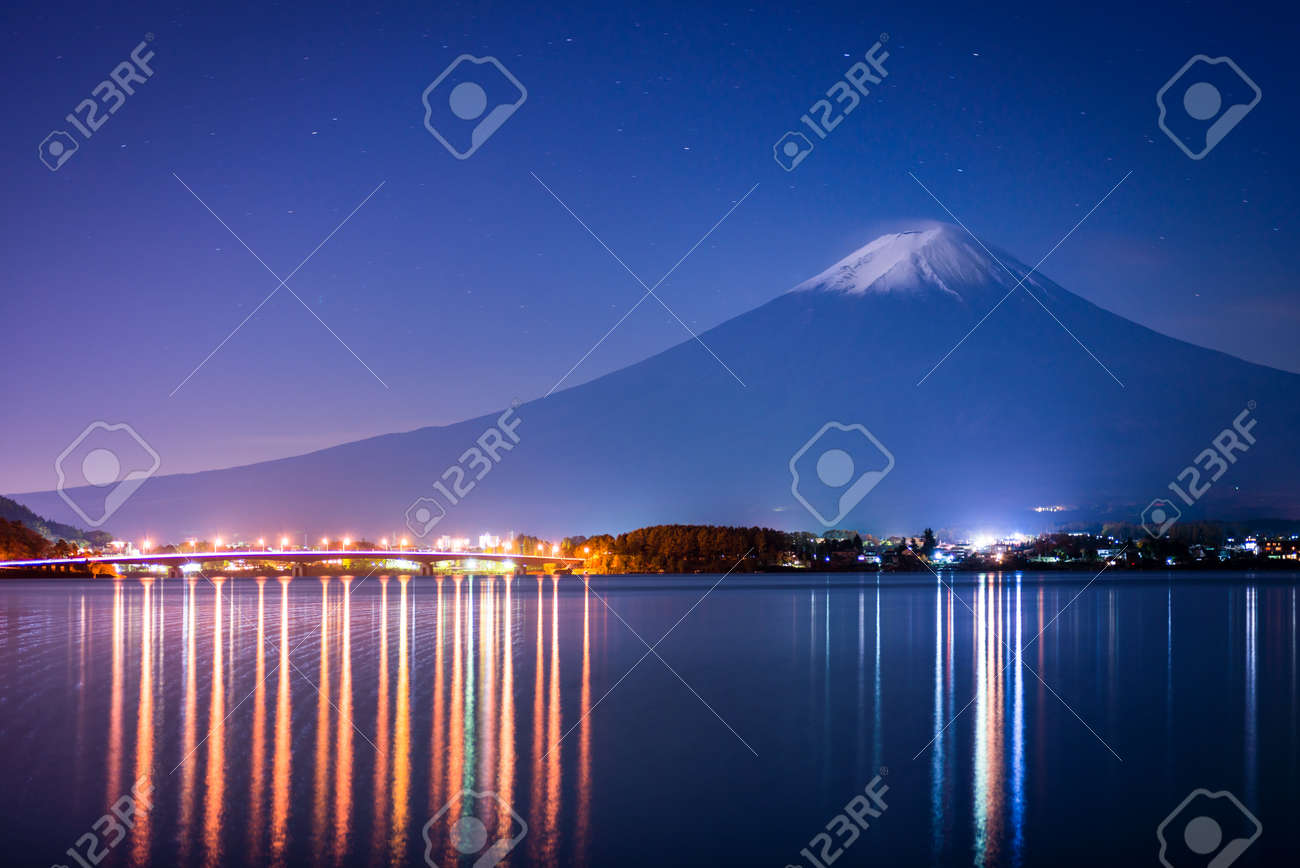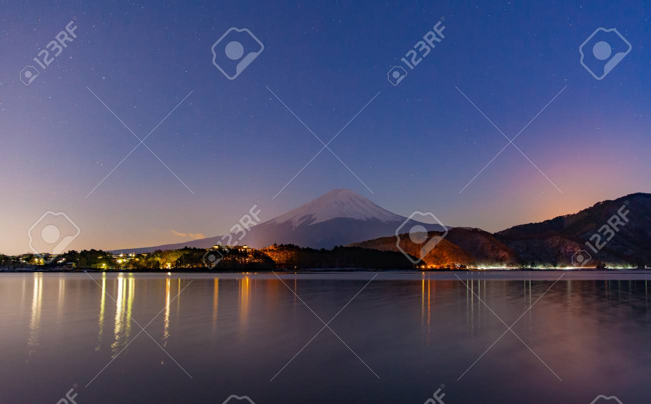 Lake Kawaguchiko At Night With Mount Fuji Background Japan Stock Image K20697113 Fotosearch