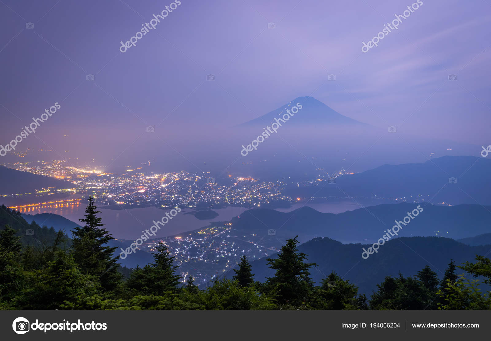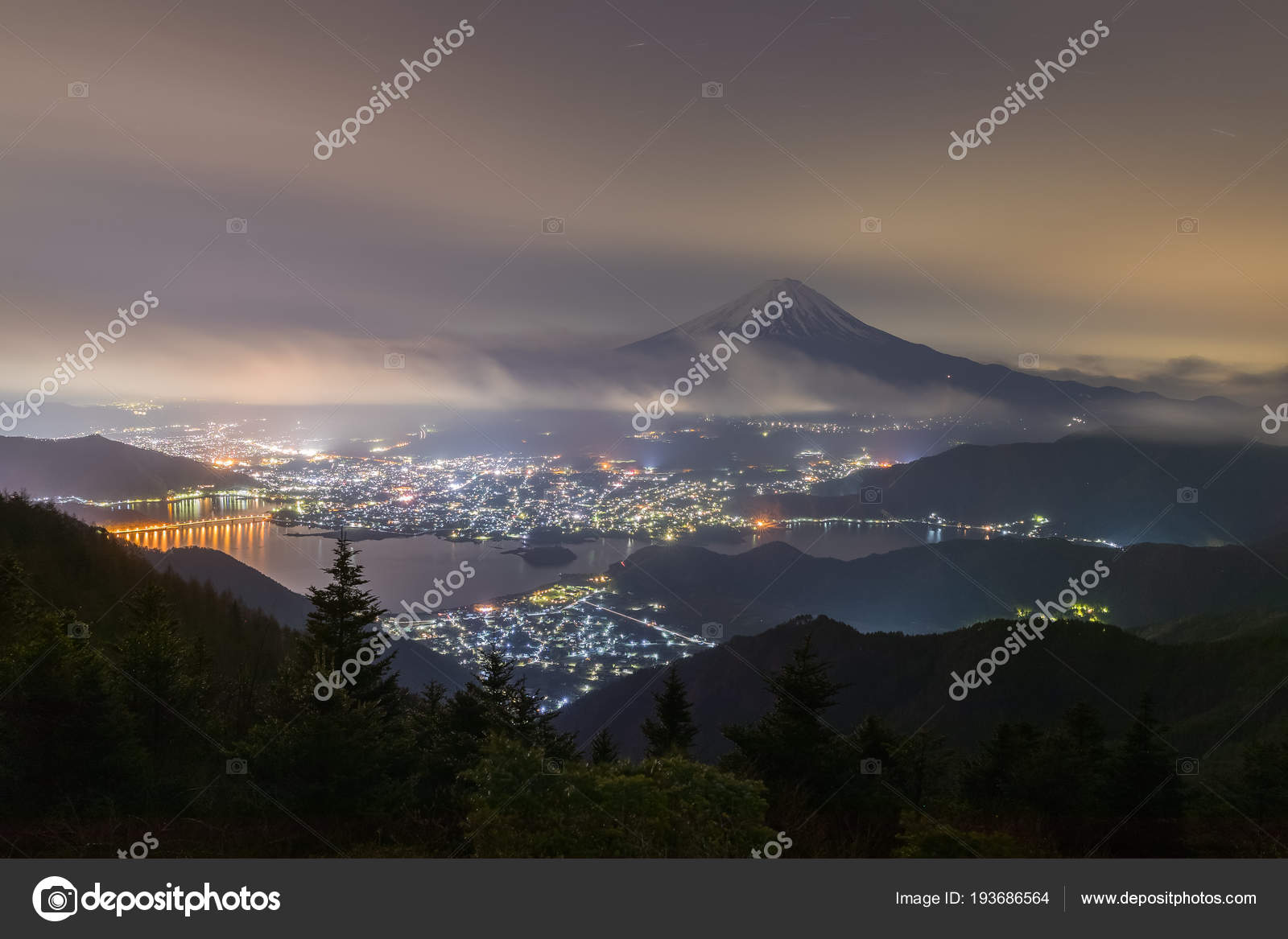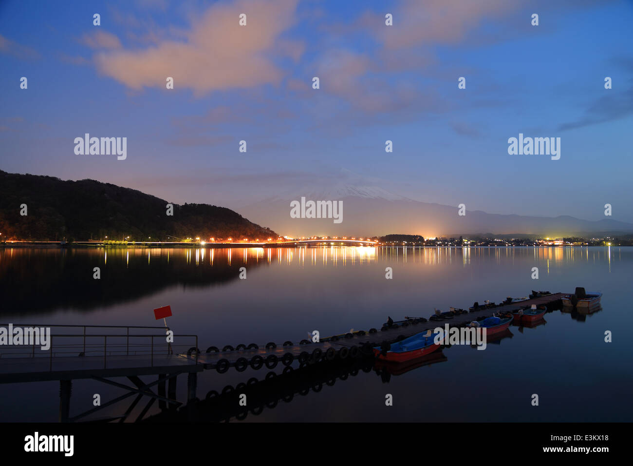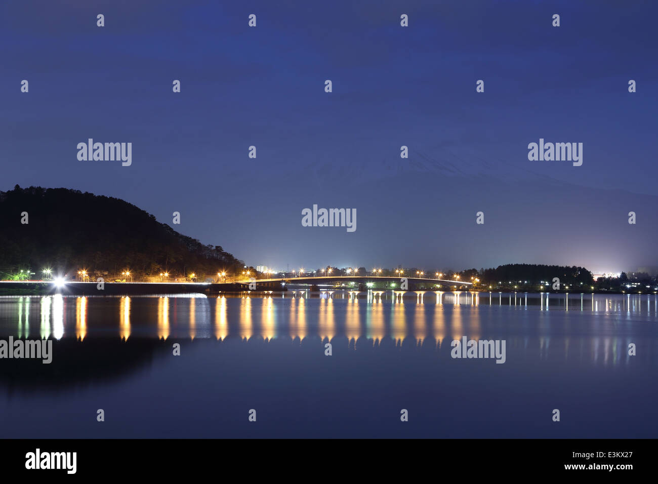 Lake Kawaguchiko At Night With Mount Fuji Background Japan Stock Image K20697113 Fotosearch