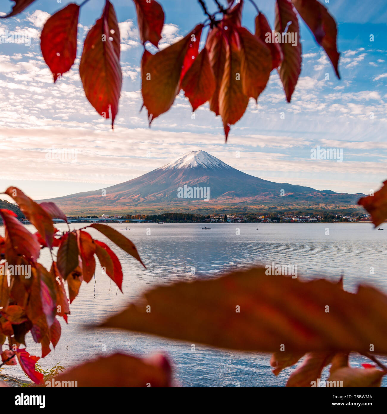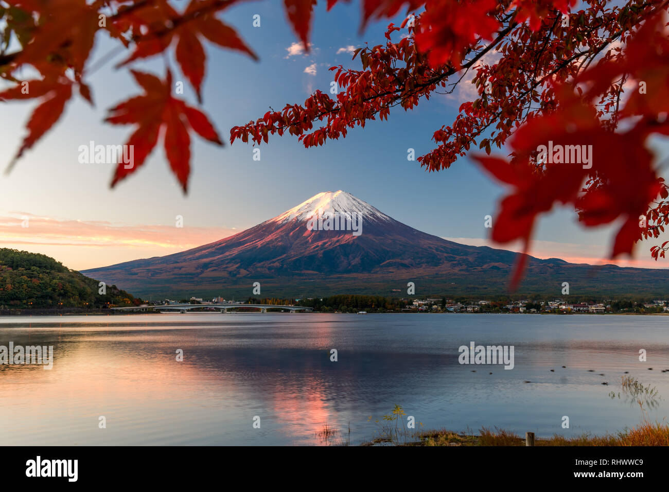 Download This Stock Image Mt Fuji In Autumn View From Lake Kawaguchiko Red Maple Leaves In Fuji J2ktx5 From Alamy S Libra Autumn Landscape Photo Maple Leaf