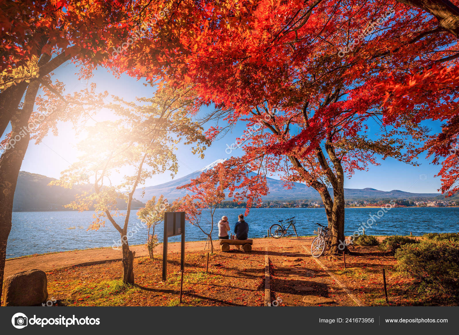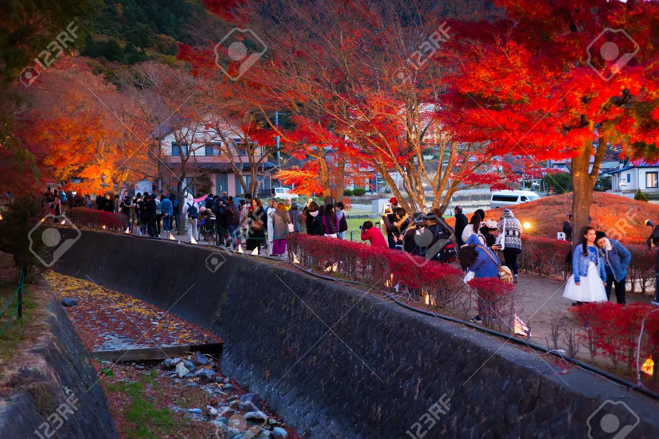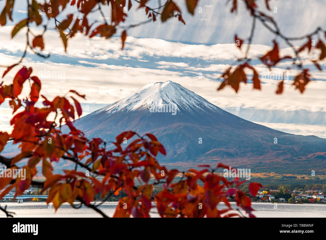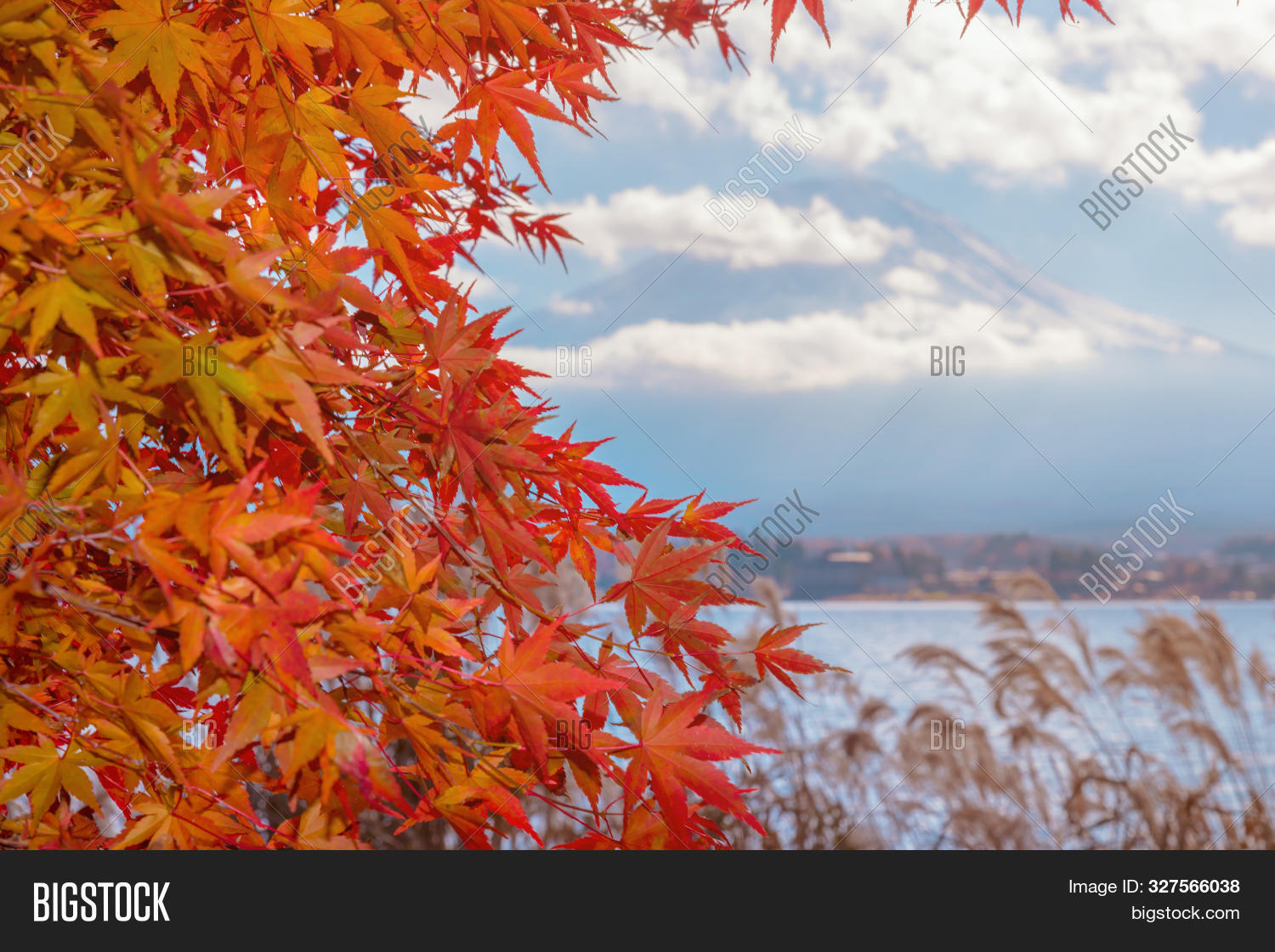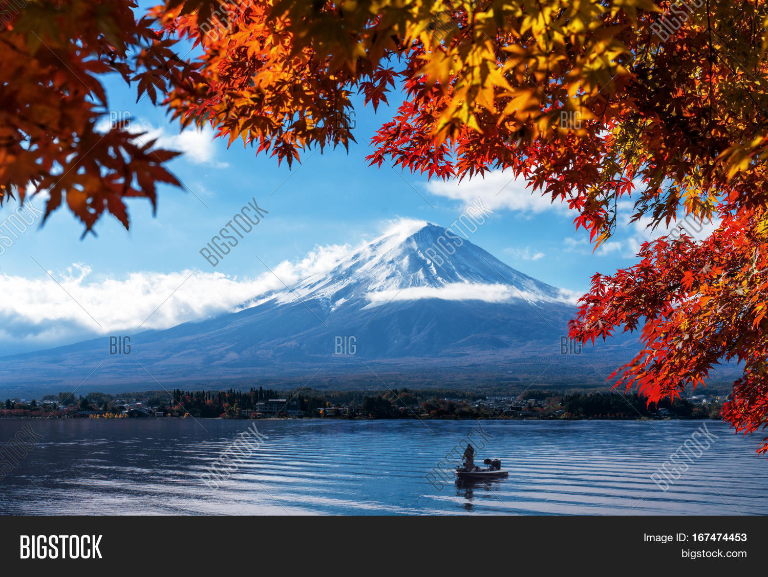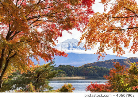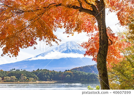 Autumn Leaves And Mt Fuji From The Hill Lake Kawaguchi Japan Stock Photo Image Of Mountainous Mountains 163794390