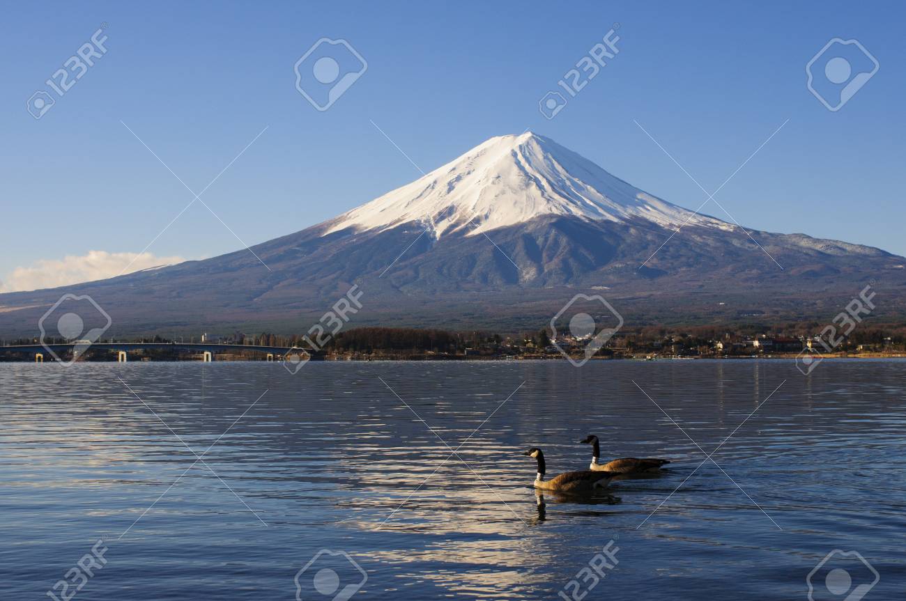 Mount Fuji View With Lake Kawaguchi And Clear Blue Sky Background Stock Photo Picture And Royalty Free Image Image 91042956
