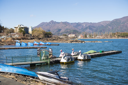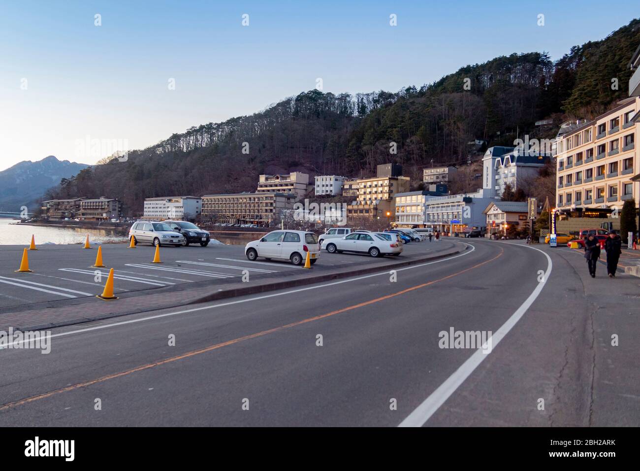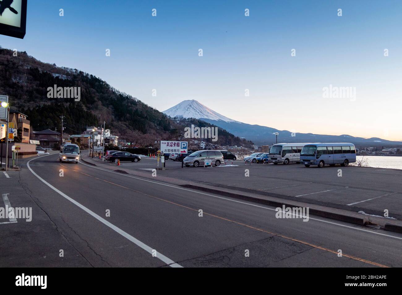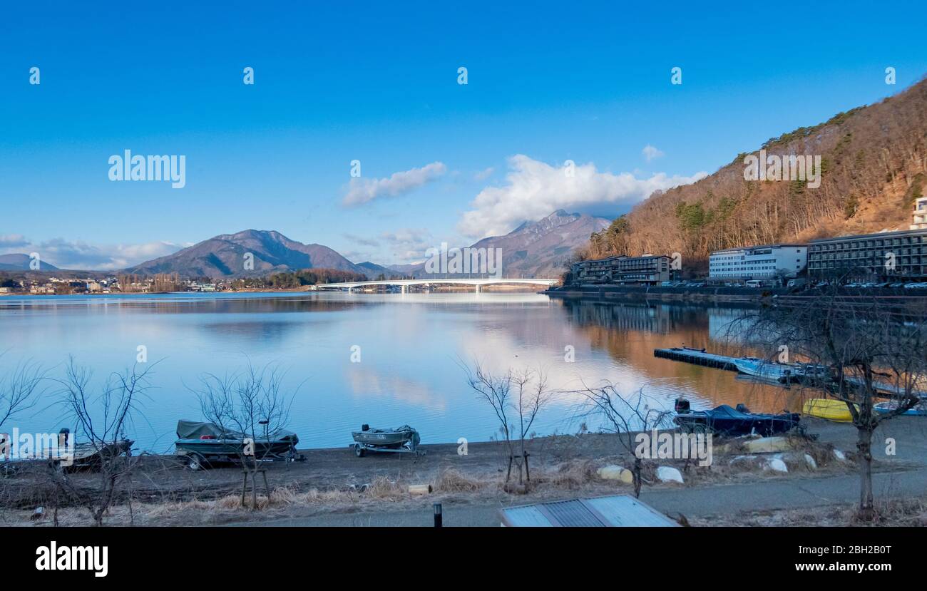 Hotels Beside Lake Kawaguchiko In The Morning Time Kawaguchiko Japan February 9 2020 Stock Photo Alamy