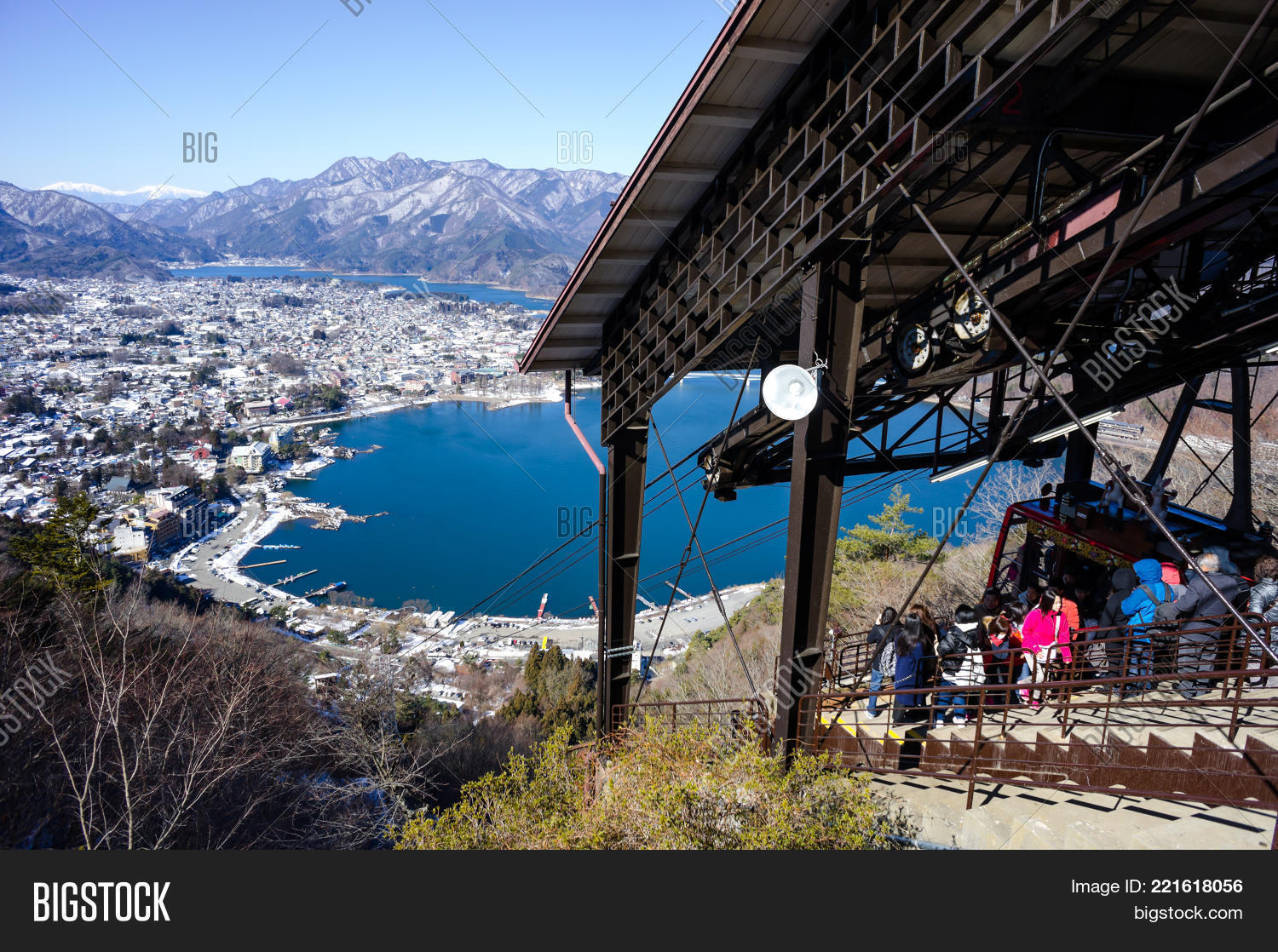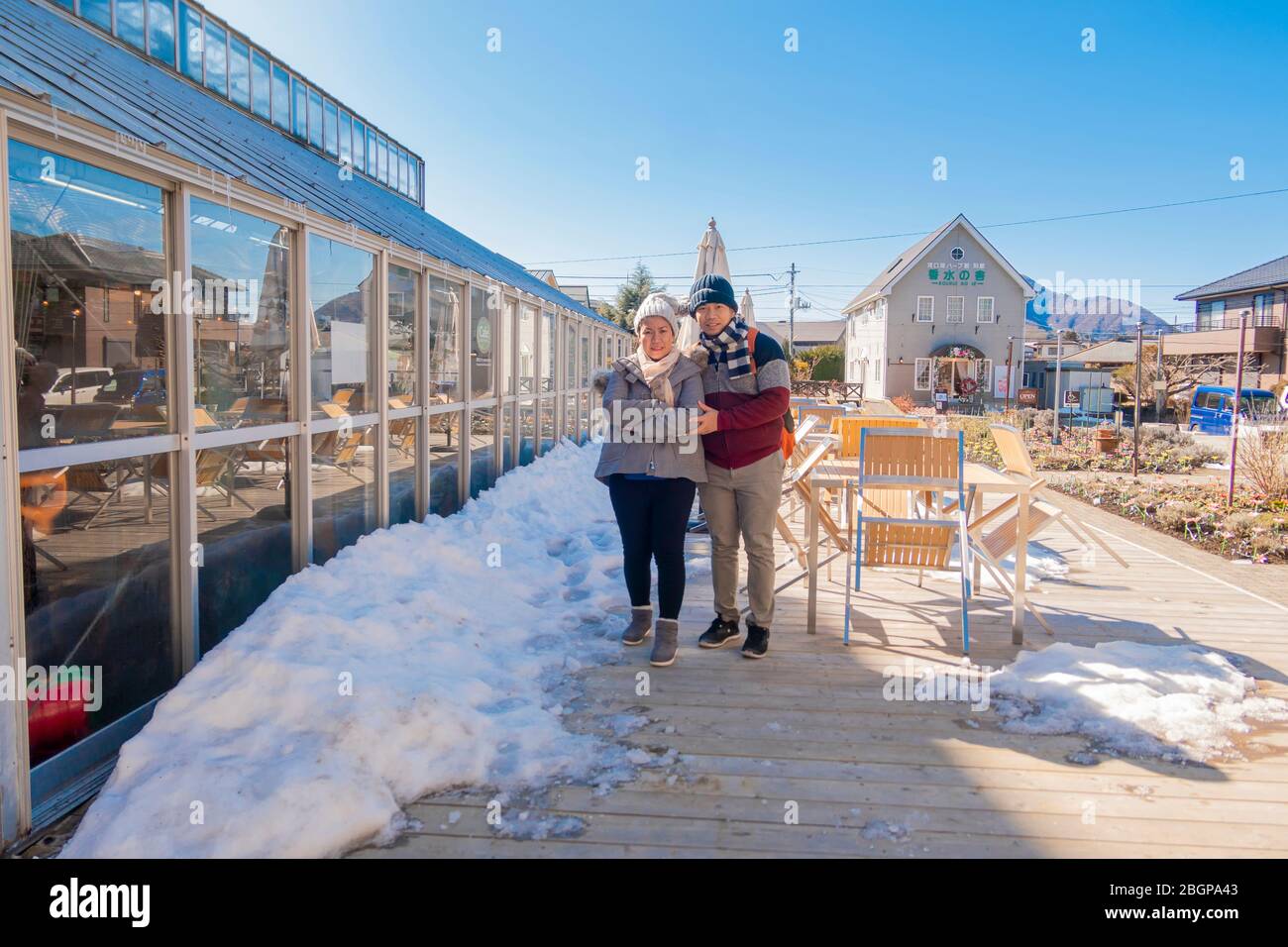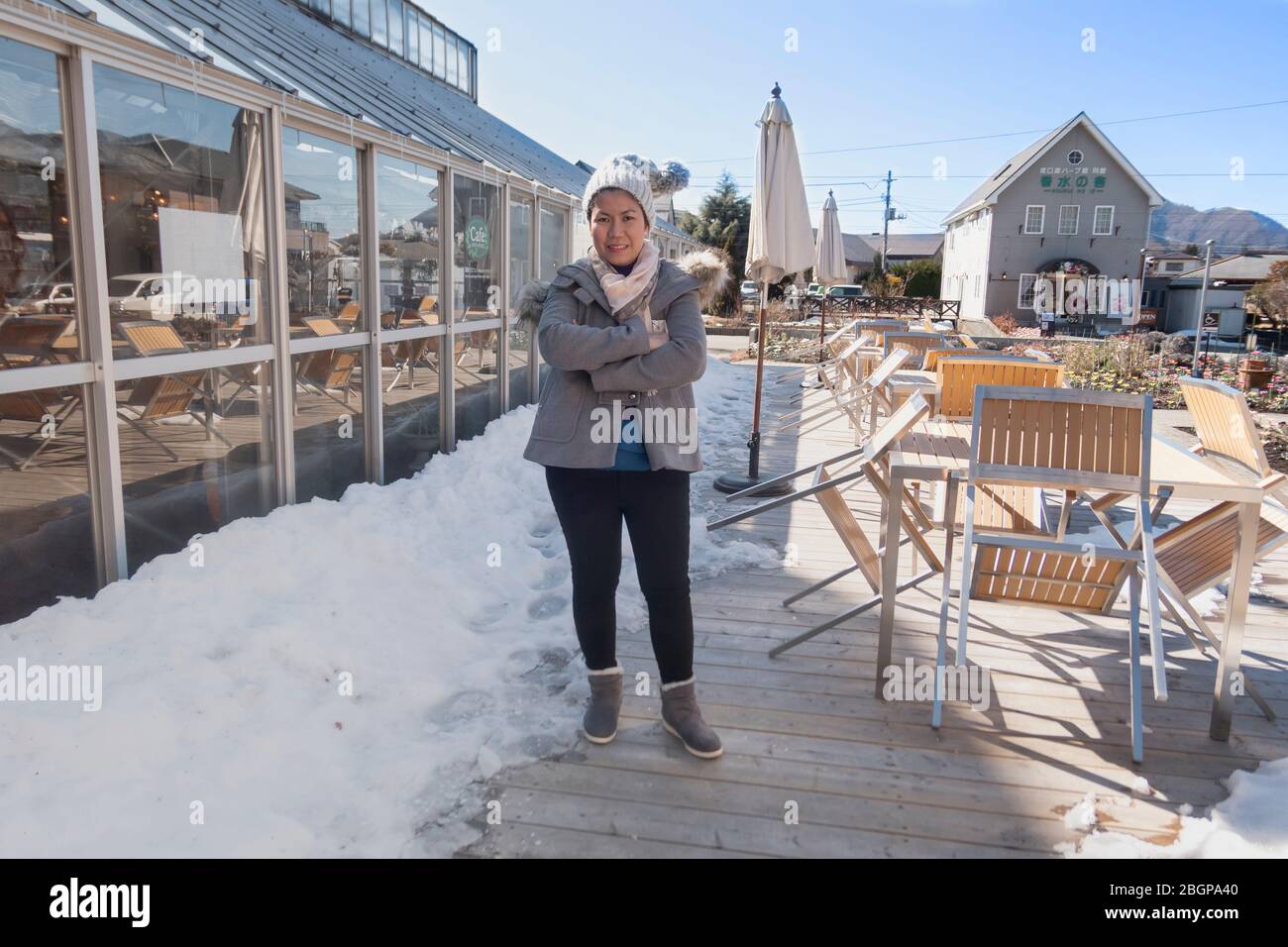 Hotels Beside Lake Kawaguchiko In The Morning Time Kawaguchiko Japan February 9 2020 Stock Photo Alamy