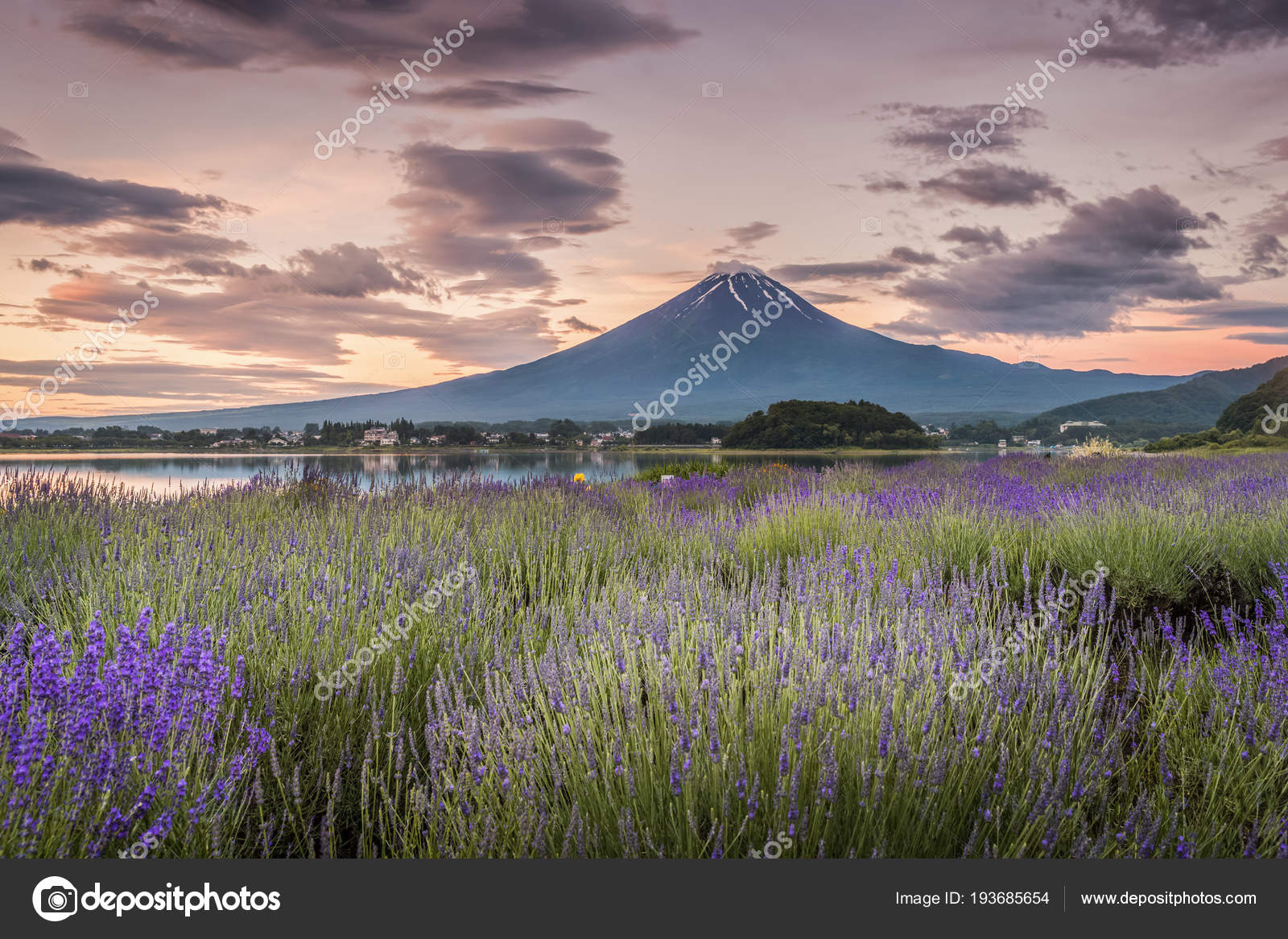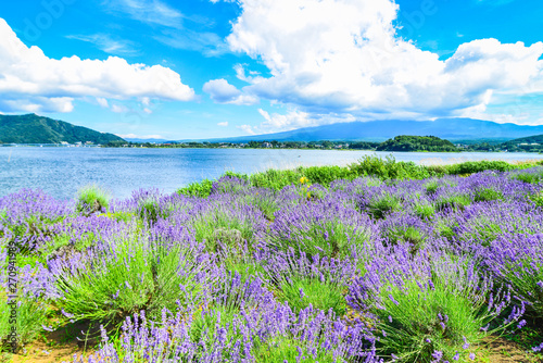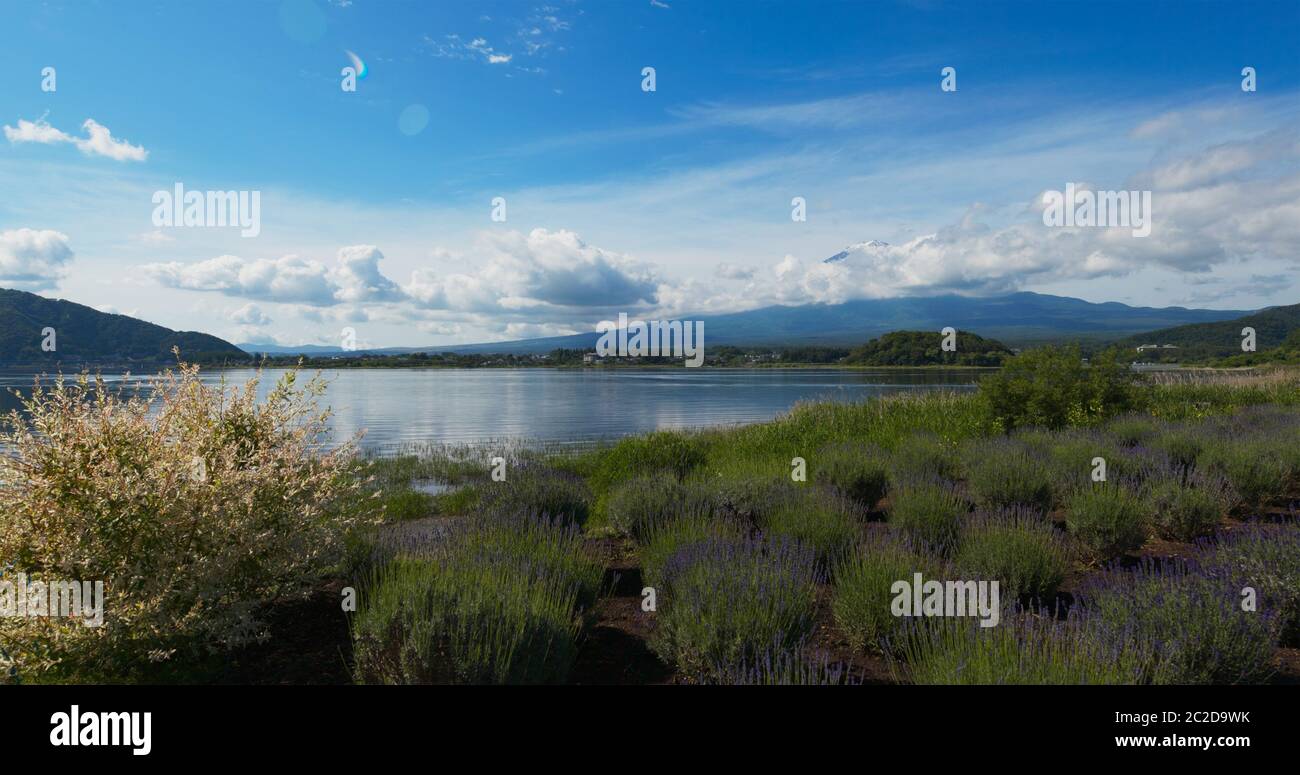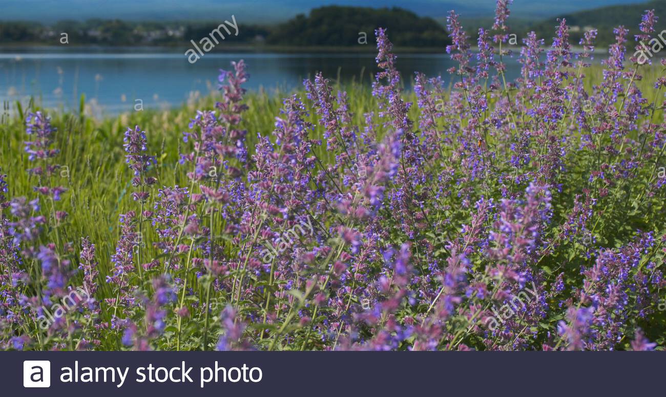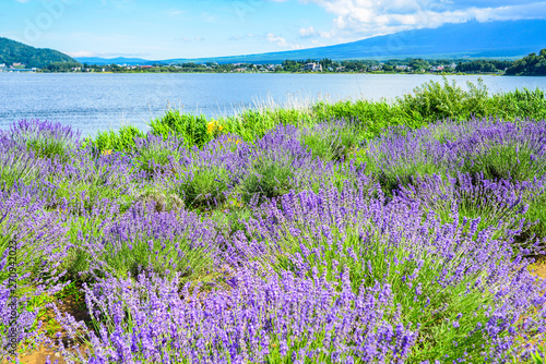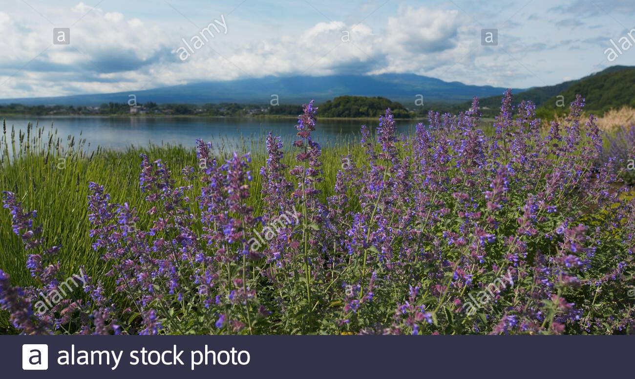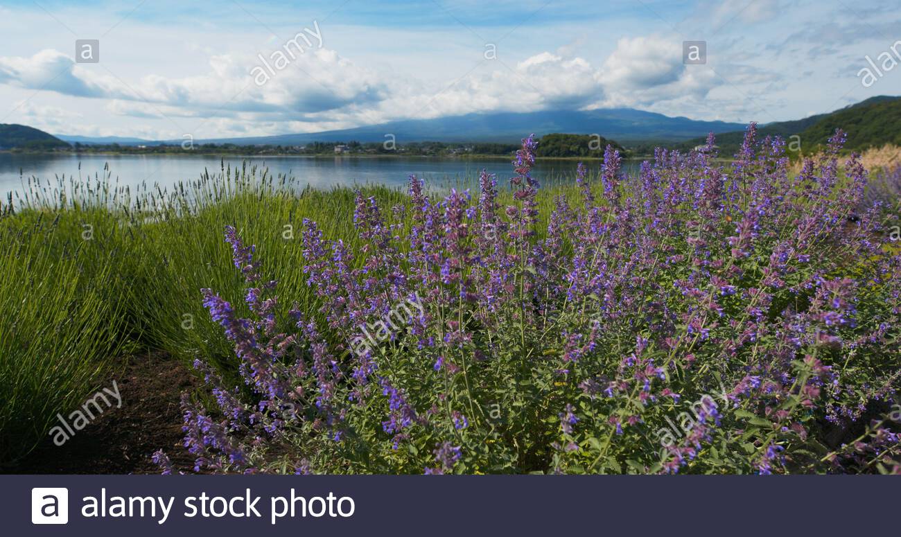 The Purple Color Of Lavender And Mountain Fuji In Background Near The Shoreline Of The Lake Kawaguchiko Buy This Stock Photo And Explore Similar Images At Adobe Stock Adobe Stock