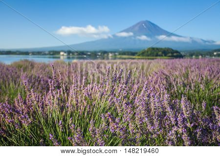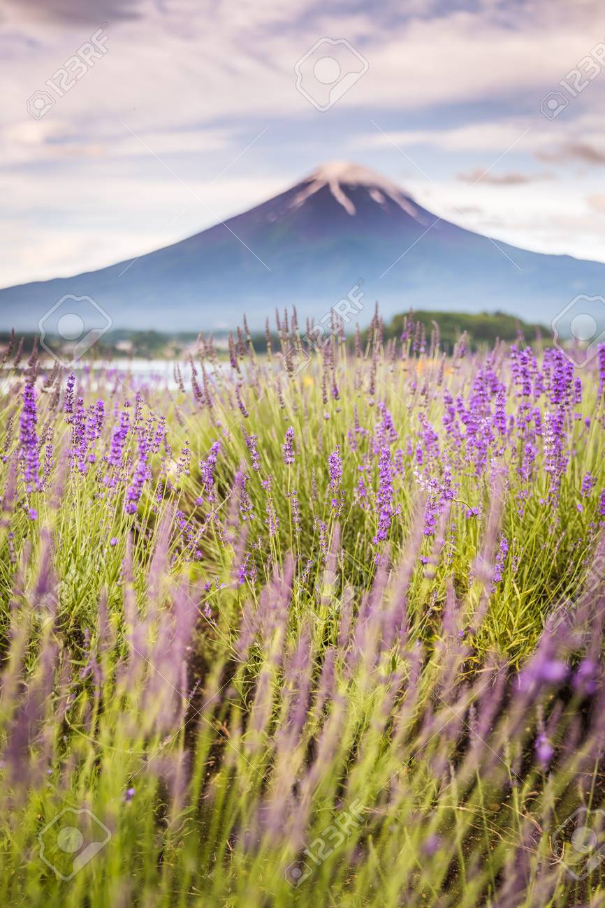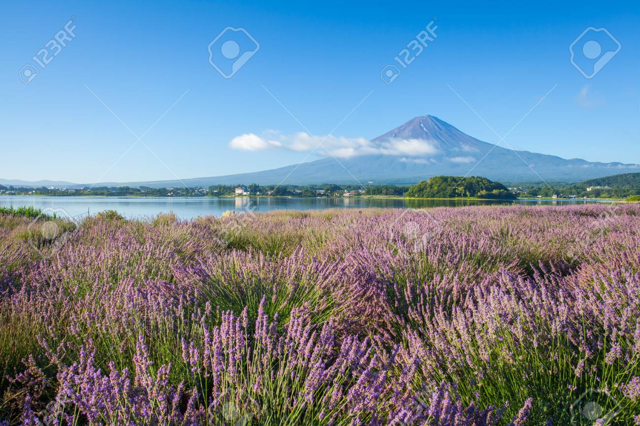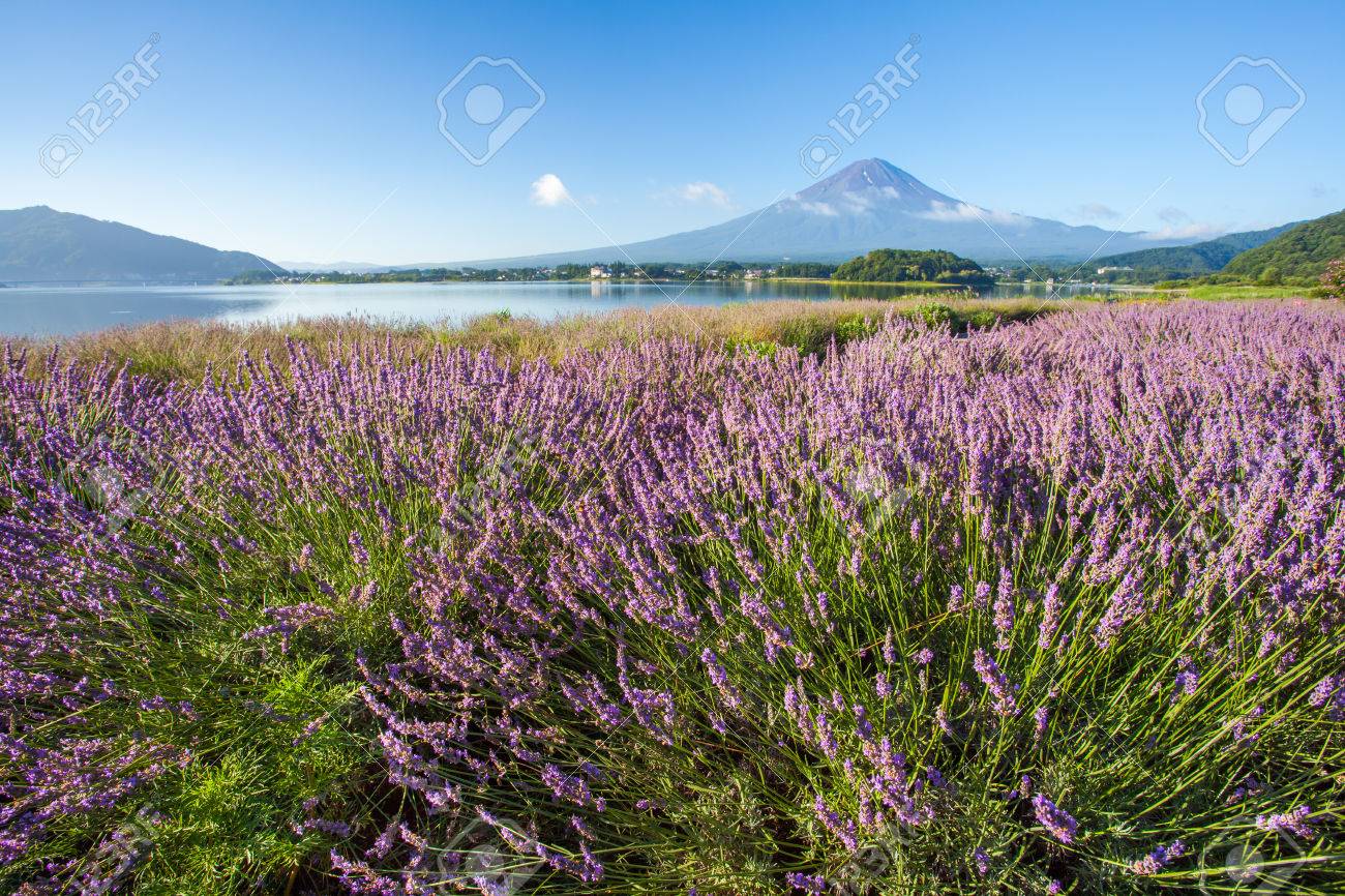 Mt Fuji And Purple Color Of Lavender At Lake Kawaguchiko Stock Image Image Of Color Beautiful 77684409