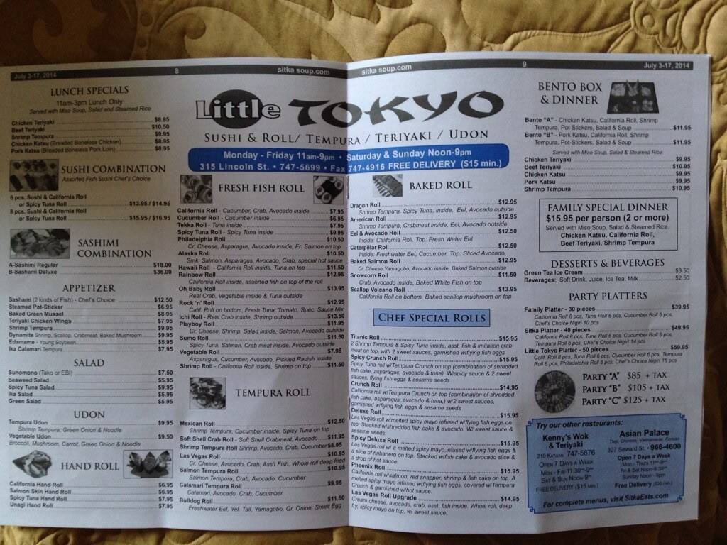 Menu Of Little Tokyo Japanese Restaurant In Pigeon Forge Tn 37863