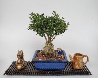 Beautiful white star shaped miniature flowers. The only complaint i have is that the trunk and raised roots had a greenish yellowish. 5995 594 shipping.
