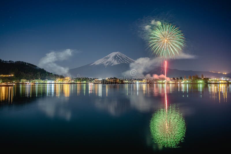 Fullmoon Mt Fuji And Winter Fireworks Stock Photo Picture And Royalty Free Image Image 118500897