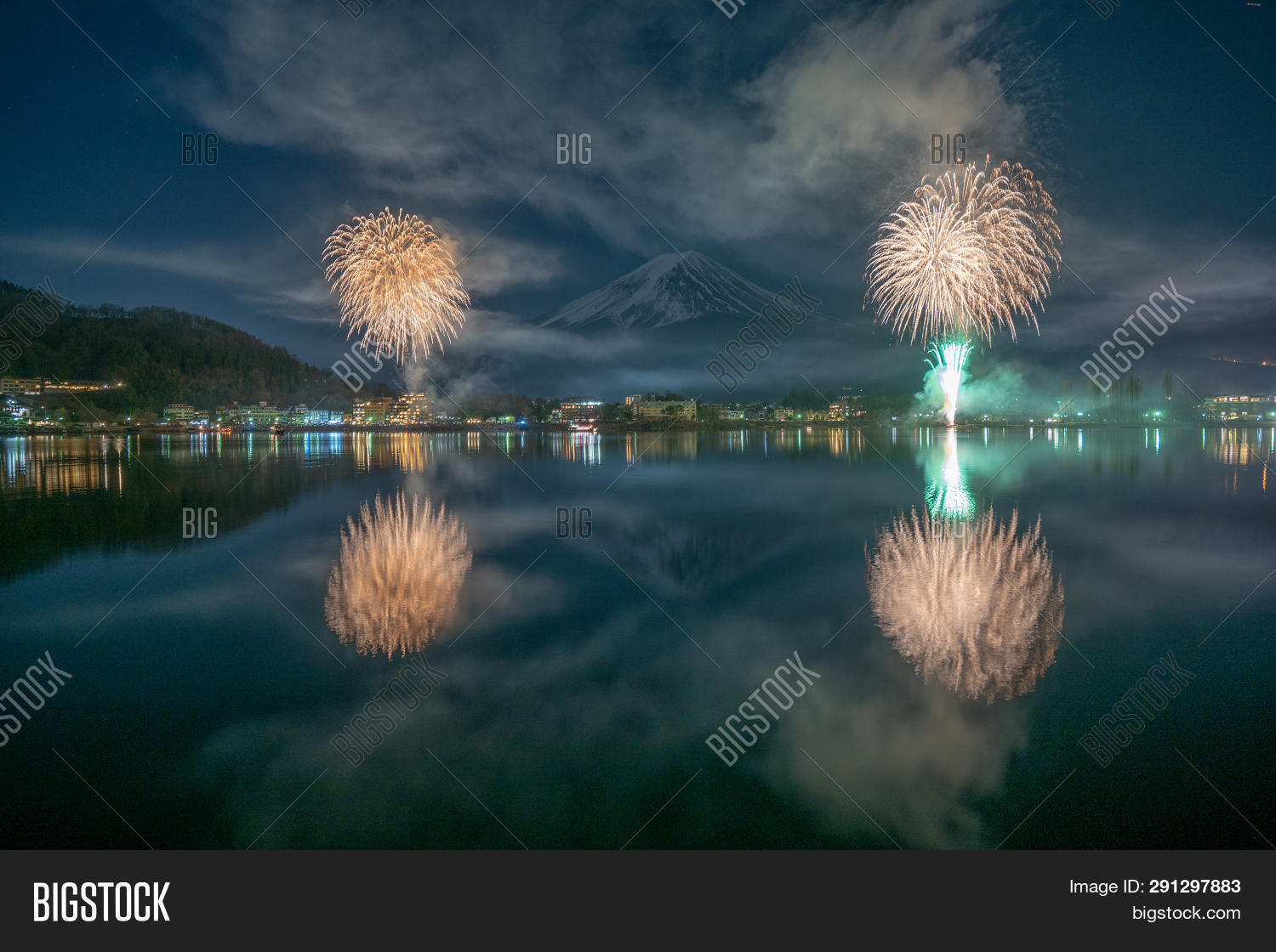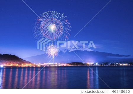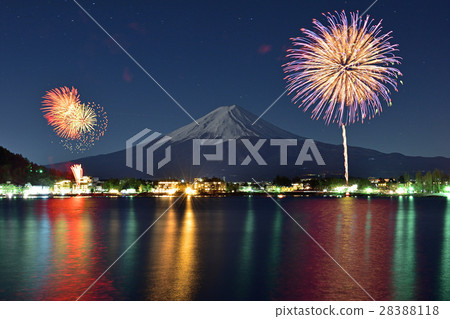 Fireworks Celebrating Over Lake Kawaguchiko At Night With Mount Stock Photo Download Image Now Istock