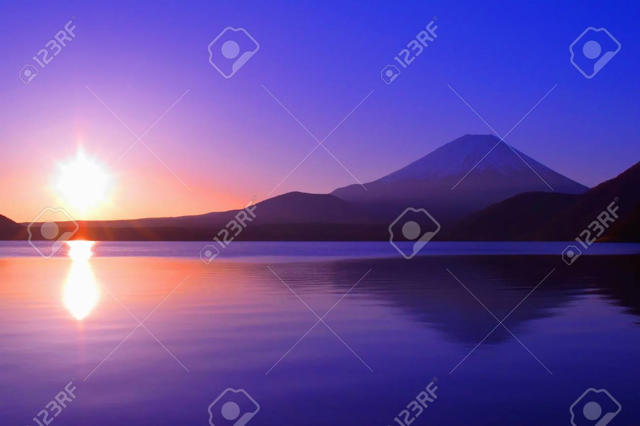 Mt Fuji With Sunrise Of The Morning Glow From Lake Motosu Japan Stock Image Image Of February Campground 171586249