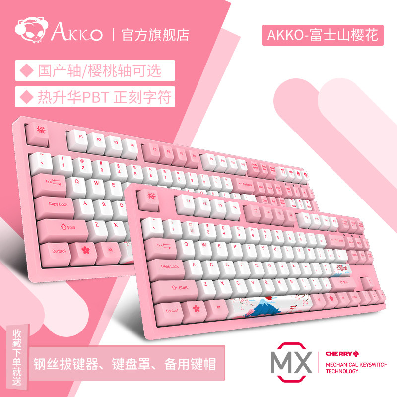 Usd 159 03 Akko 3108v2 Mount Fuji Cherry Blossom Mechanical Keyboard Game Germany Original Cherry Cherry Axis Red Shaft Green Shaft Pink Girl Cute Net Red Typing 108 Key 87 Key Keyboard
