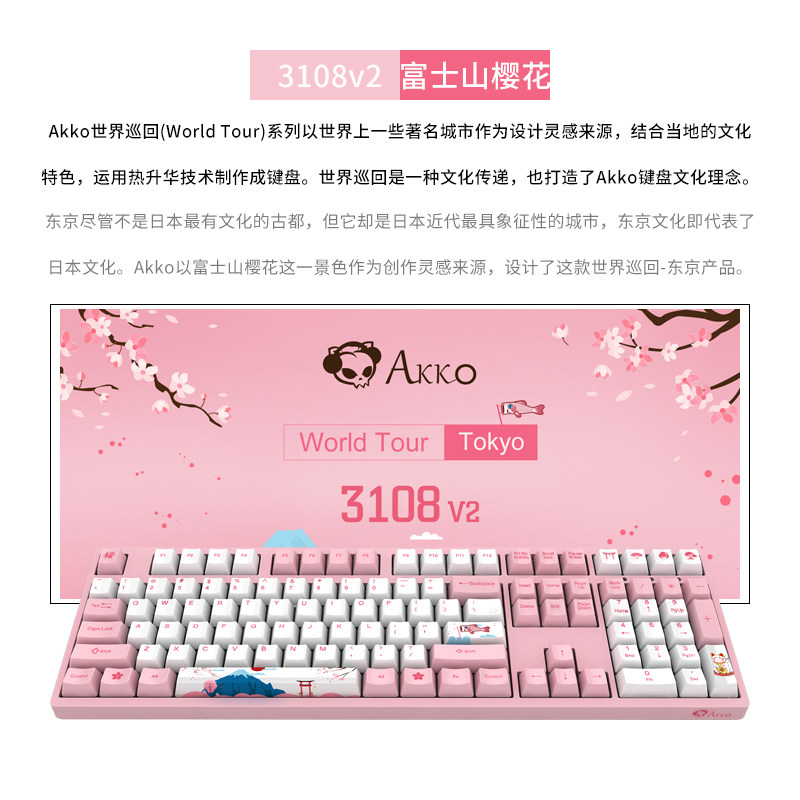Akko 3108v2 Mount Fuji Cherry Blossom Mechanical Keyboard Green Axis Tea Axis Red Axis Cherry Axis Cherry Girl Pink Typing Office 68 Key 84 Key Game Gaming 87 Key 108 Key Lazada Singapore
