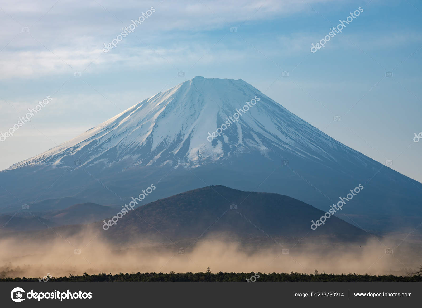 Lake Landscape With Mount Fuji In The Clouds On The Background At Sunset Stock Photo Image Of Lake Japanese 174885588