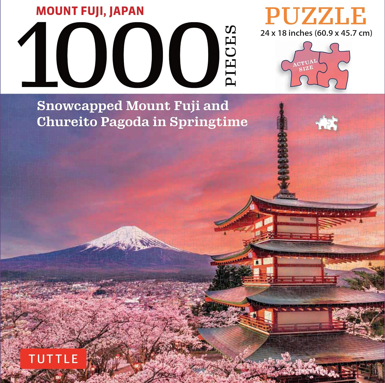 Amazon Com Mount Fuji Japan Jigsaw Puzzle 1 000 Pieces Snowcapped Mount Fuji And Chureito Pagoda In Springtime Finished Size 24 In X 18 In Tuttle Publishing Toys Games
