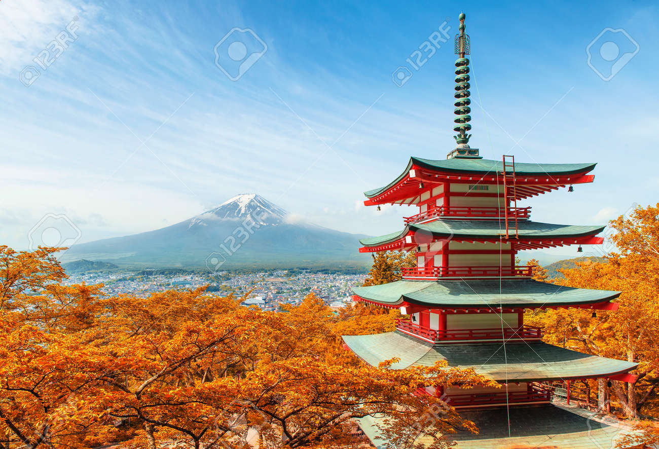 Fujiyoshida Japan At Chureito Pagoda And Mt Fuji In The Spring Stock Photo Picture And Royalty Free Image Image 77863213