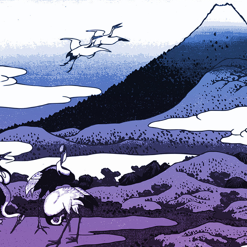 Vault W Artwork Japanese Cranes And Mount Fuji By Katsushika Hokusai Framed Painting Print In Blue And Purple Ombre Wayfair