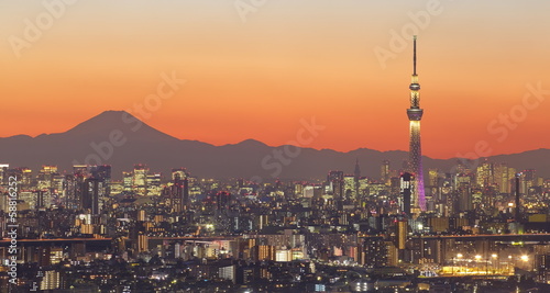 Tokyo City View And Tokyo Skytree With Mt Fuji Wall Mural Wallpaper Murals Torsakarin