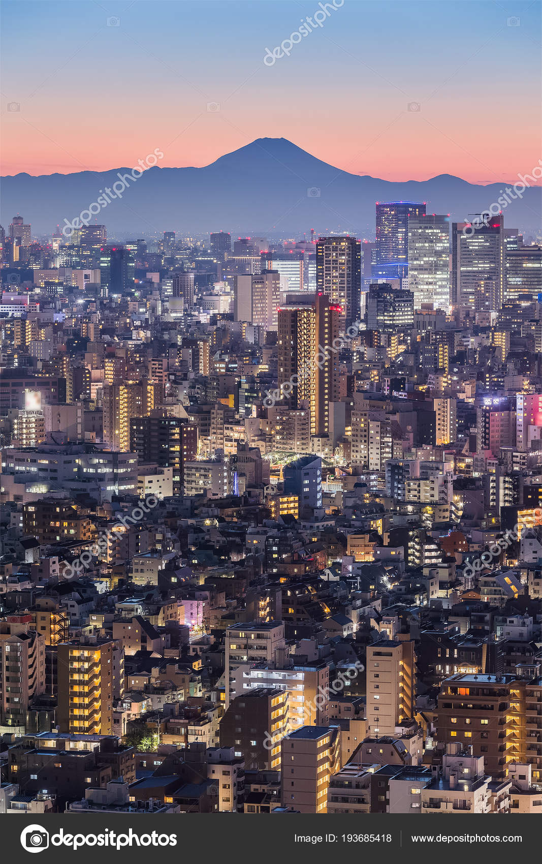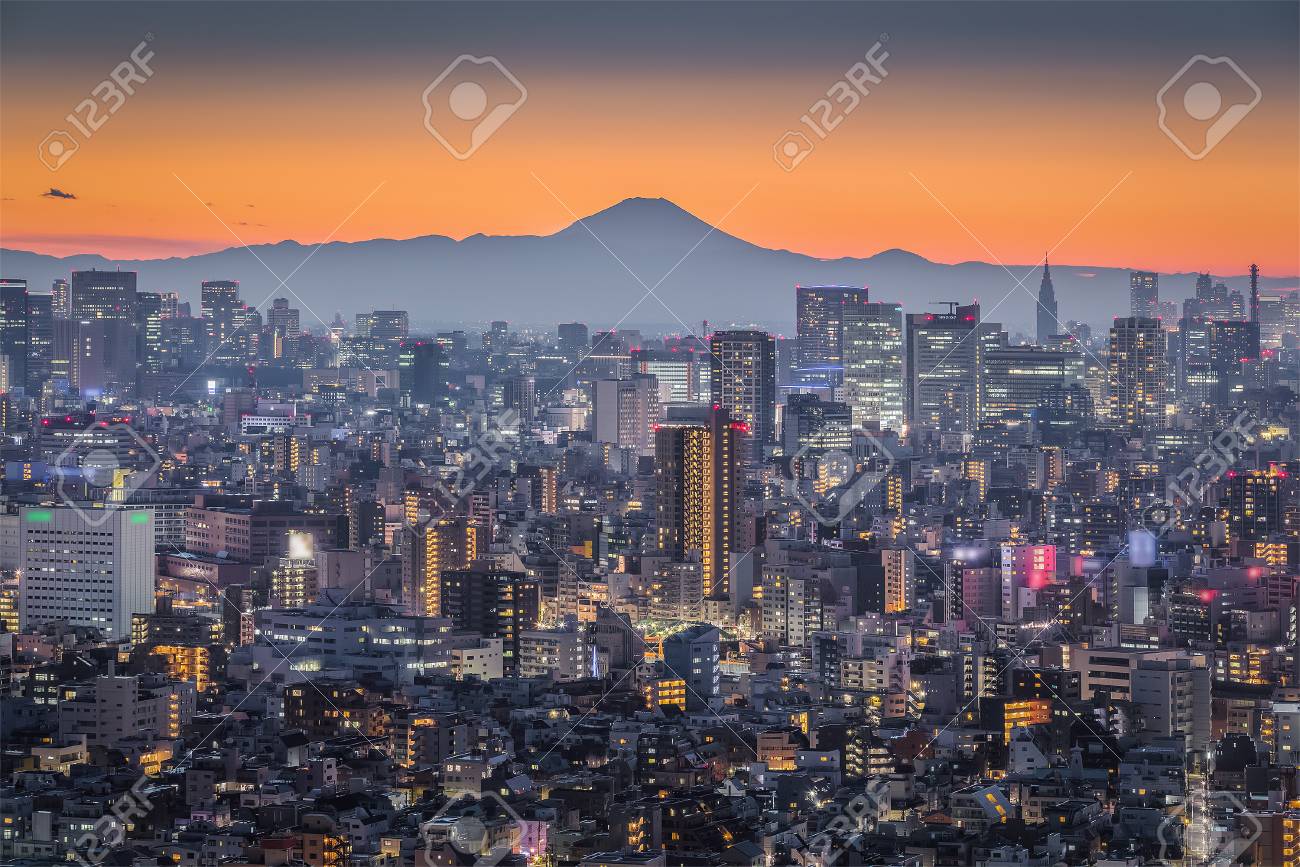 Tokyo Night City View Mountain Fuji Mount Fuji Lies 100 Stock Photo C Torsakarin 179505630