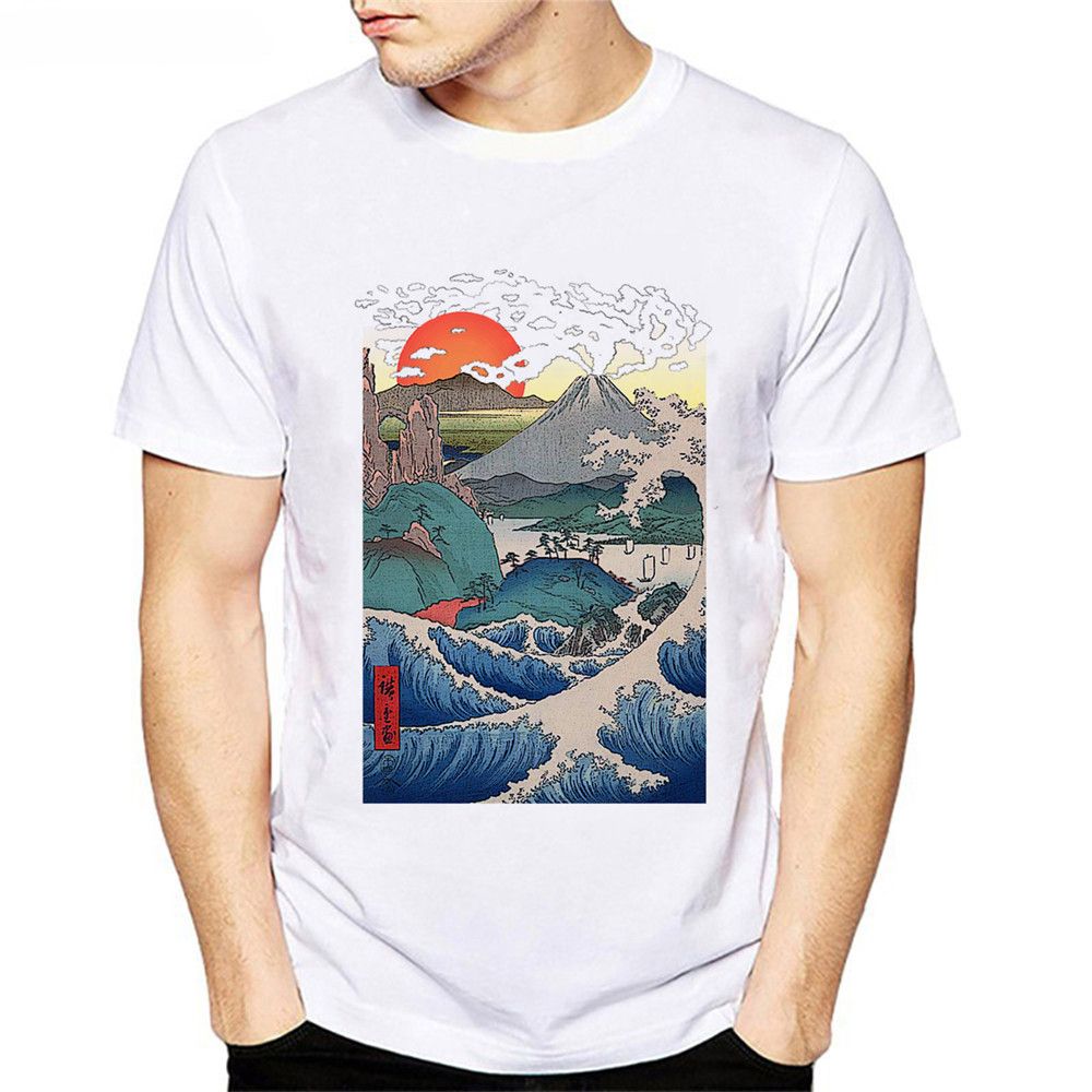 Japan Mount Fuji Trendy T Shirts Men Graphic Comical White Formal Short Sleeves T Shirt Pop Top Tee Shirt De Marque Tshirt Boys White T Shirt Design T Shirt Deals From Fjdh08