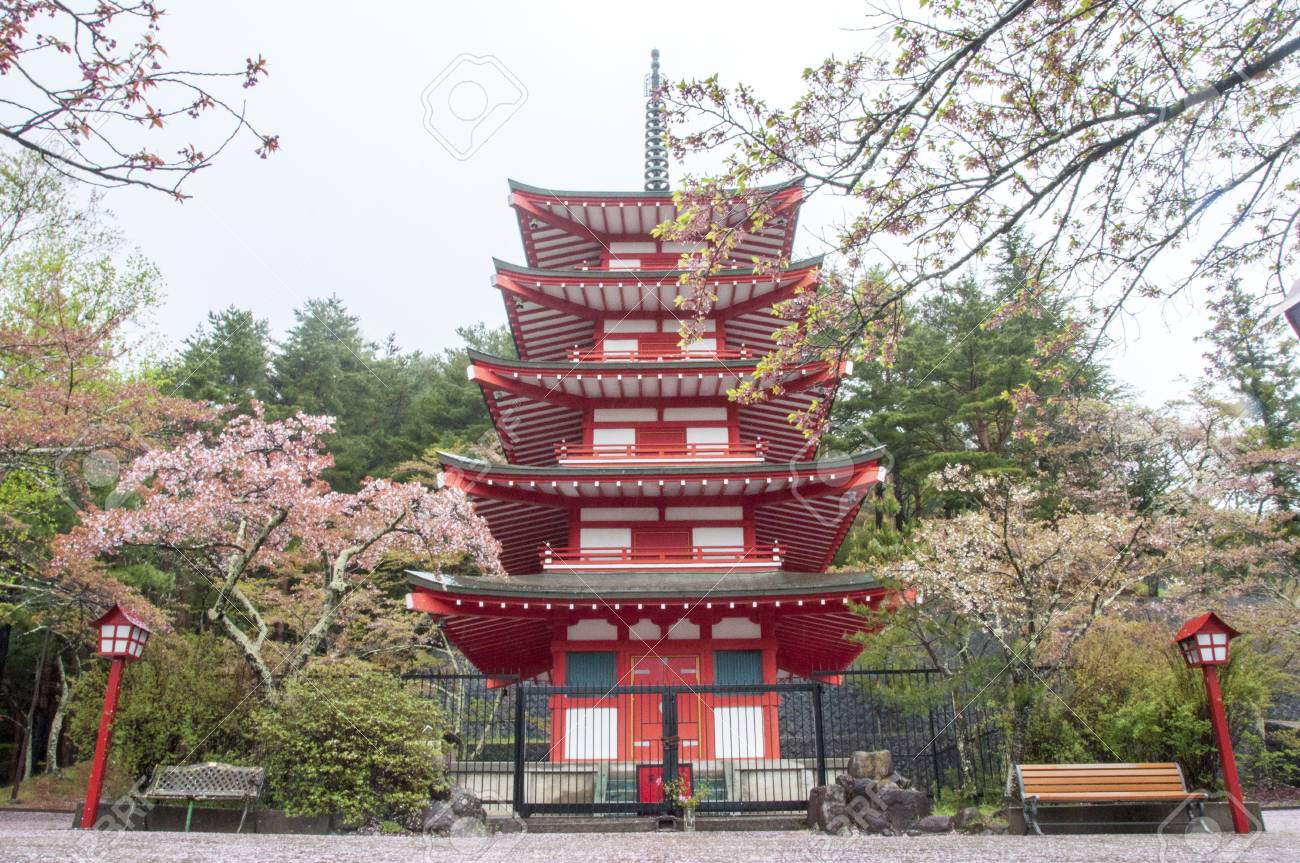 Mt Fuji And Temple Pagoda In Fujiyoshida Japan Stock Photo Picture And Royalty Free Image Image 92221831
