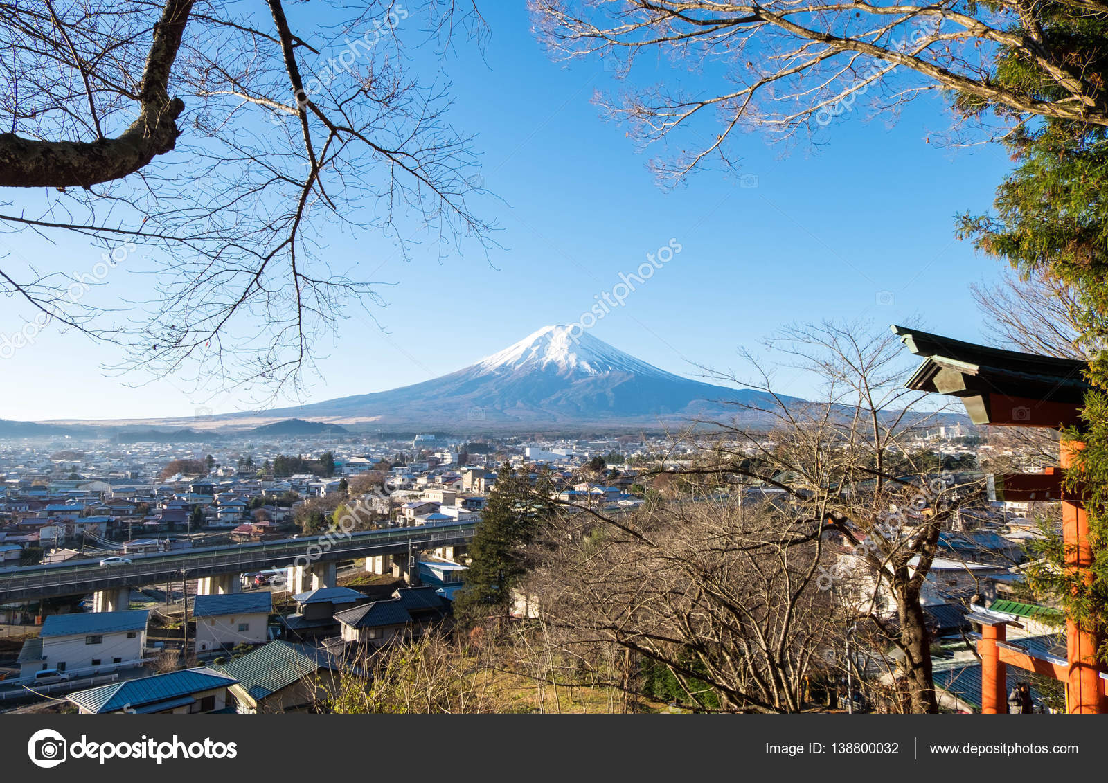 View Of Mount Fuji In December From Chureito Temple Gate Stock Photo C Yanisapae 138800032