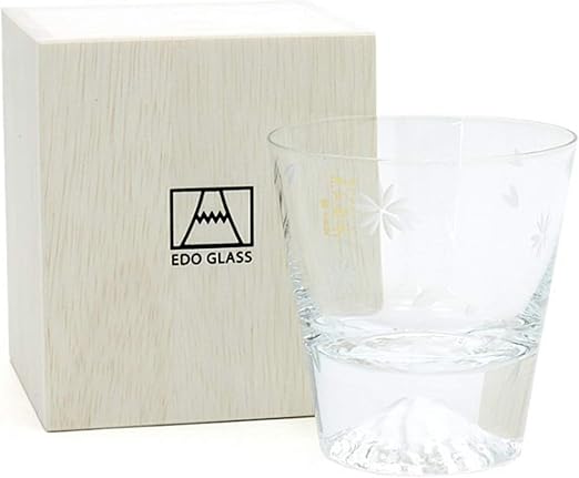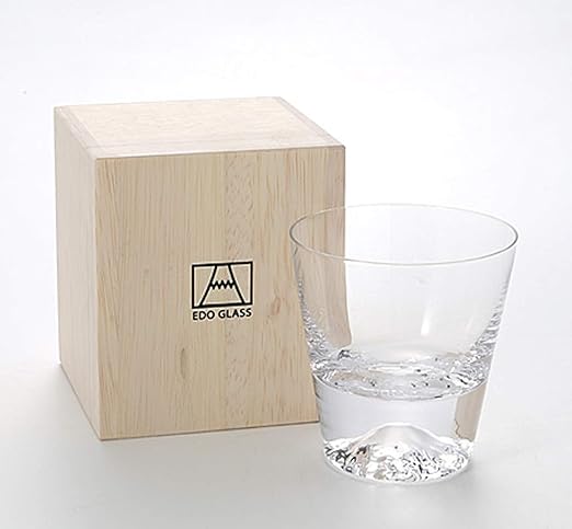 Amazon Com Edo Glass Mt Fuji Single Rock Glass 270ml 9 1 Oz In Wooden Gift Box Great For Japanese Sake Wine Whisky Scotch And Bourbon Traditional Craft By Japan Beer Glasses