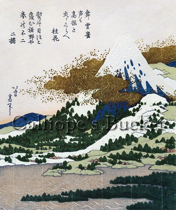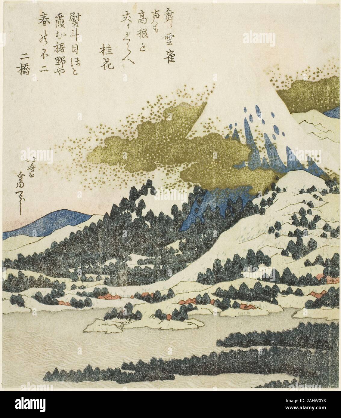 Katsushika Hokusai Mount Fuji From Lake Ashi In Hakone 1825 1840 Japan Color Woodblock Print With Metallic Pigments Shikishiban Surimono Stock Photo Alamy