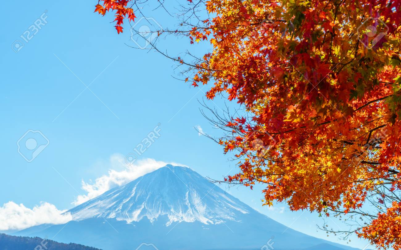 Colorful Autumn Foliage Of Japanese Maple Tree Leaves With Mt Stock Photo Picture And Royalty Free Image Image 110529468