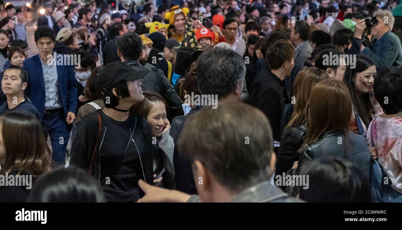 Huge Crowd Of People In The Street Of Shibuya During Halloween Night Tokyo Japan Stock Photo Alamy