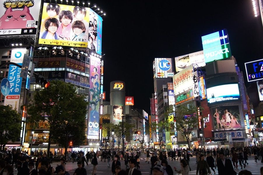 Japan Tokyo Godzilla Shibuya Toho Cinema Billboards Busy City Centre Big Crowds Pikist