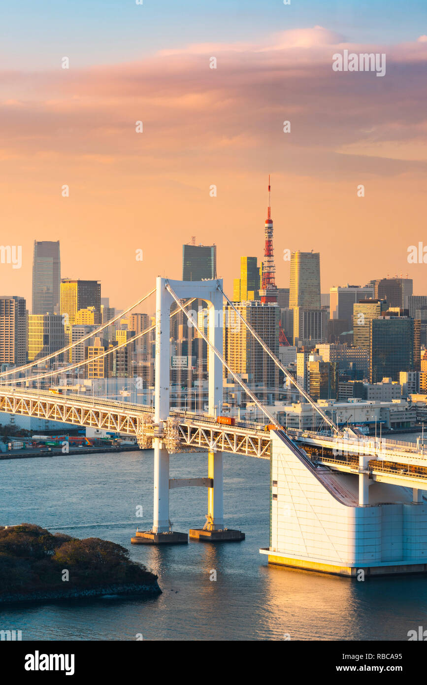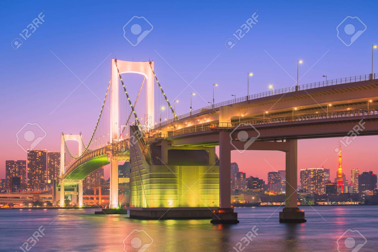 City Skyline Of Tokyo Bay Rainbow Bridge In Odaiba Japan Stock Photo Download Image Now Istock