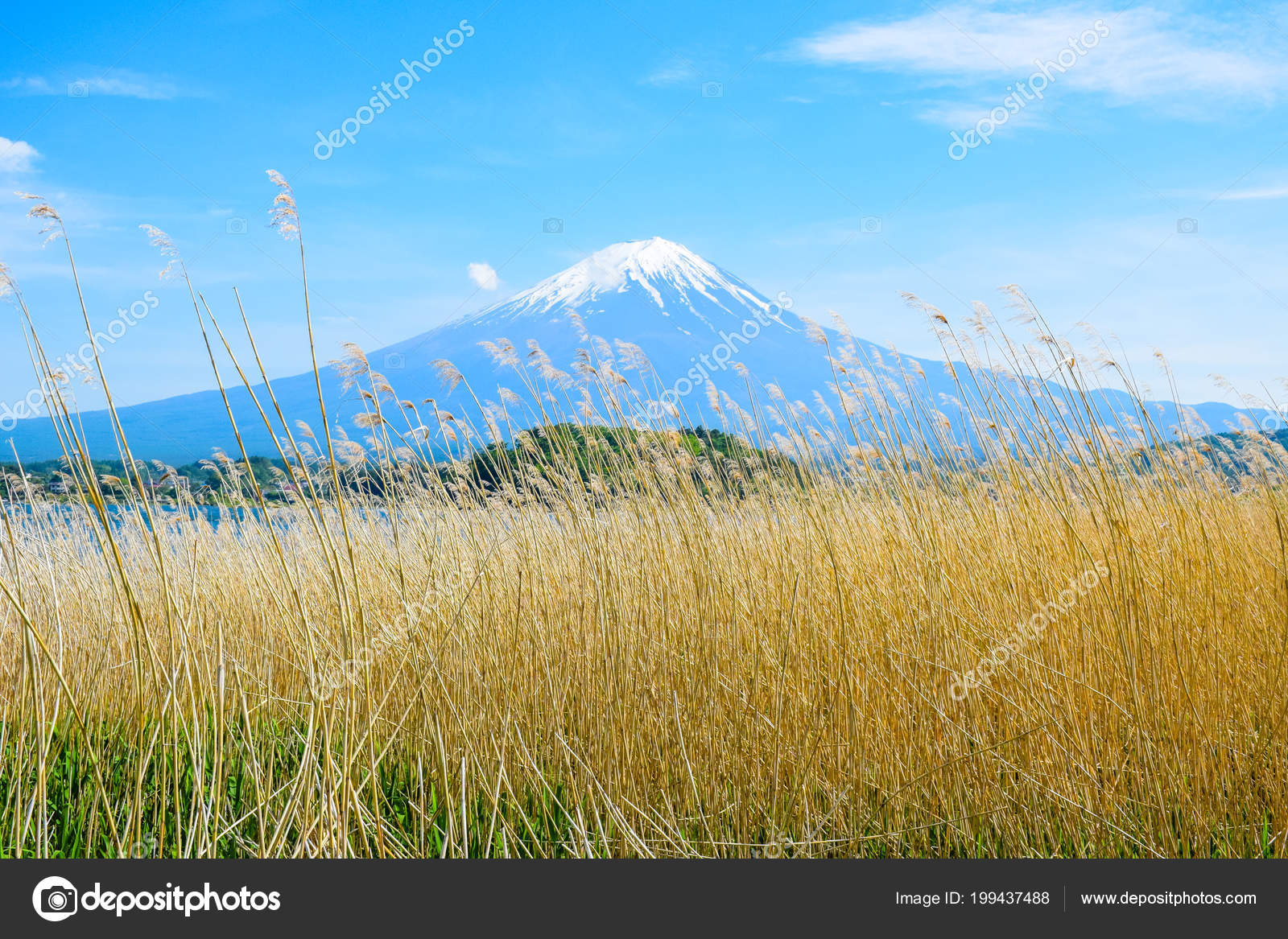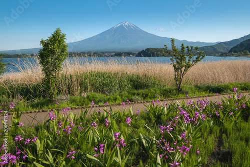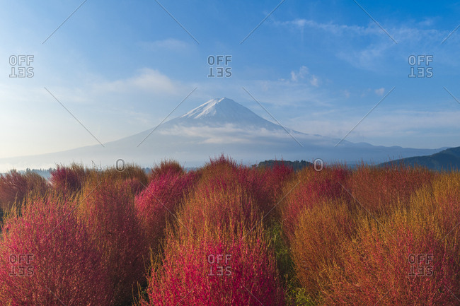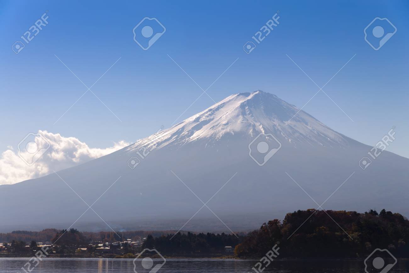 Fuji Mountain On Blue Sky Background View From The Lake Kawaguchiko Stock Photo Picture And Royalty Free Image Image 98103321