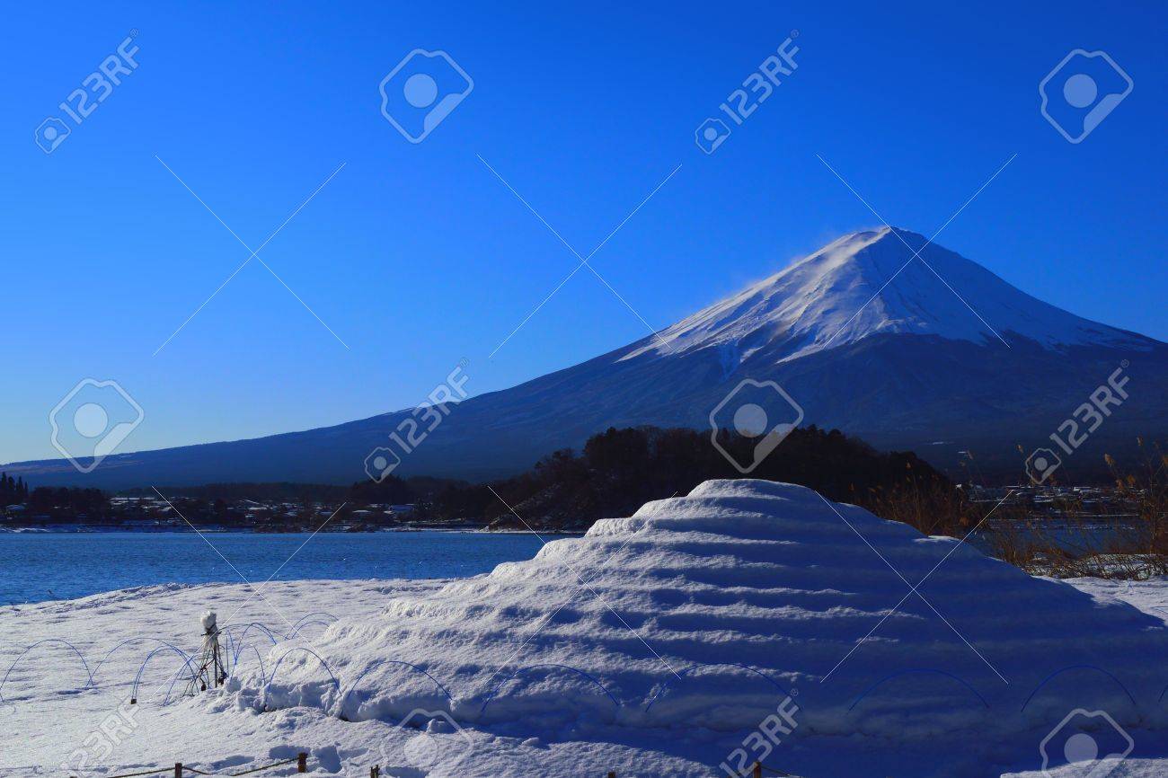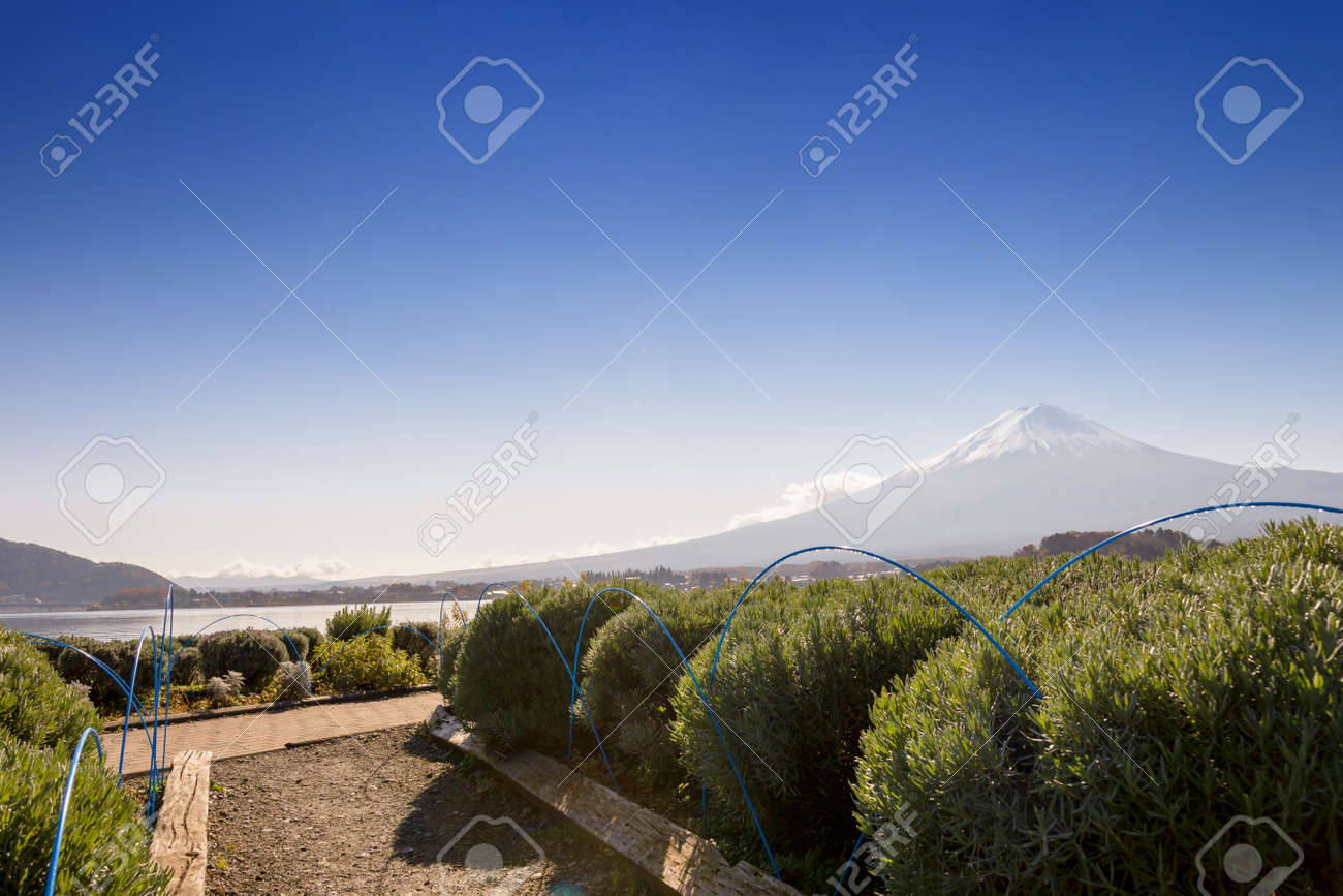Blue Sky Snow Covered Mt Fuji From Kawaguchiko Lake Oishi Park Stock Photo Picture And Royalty Free Image Image 73681299