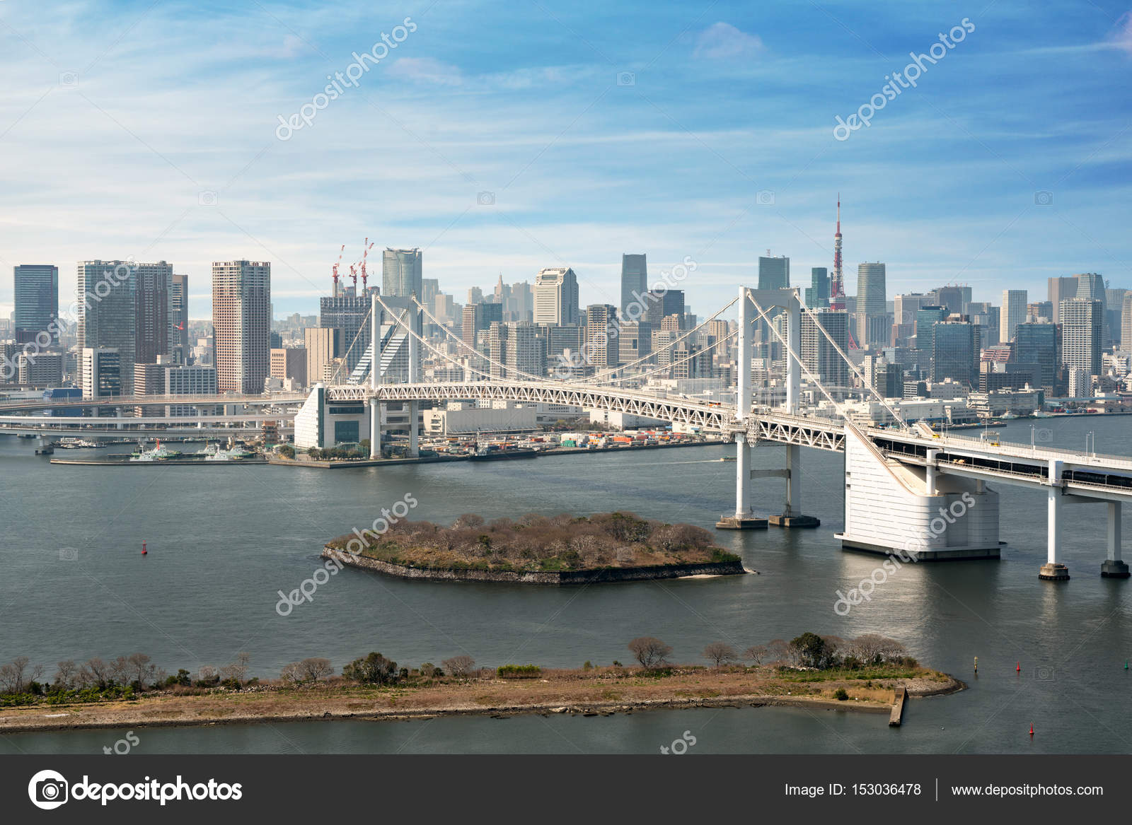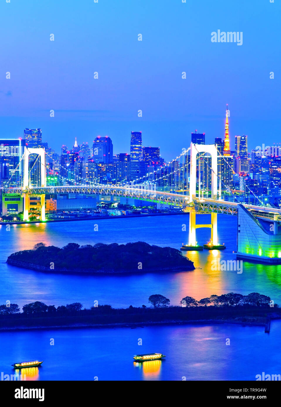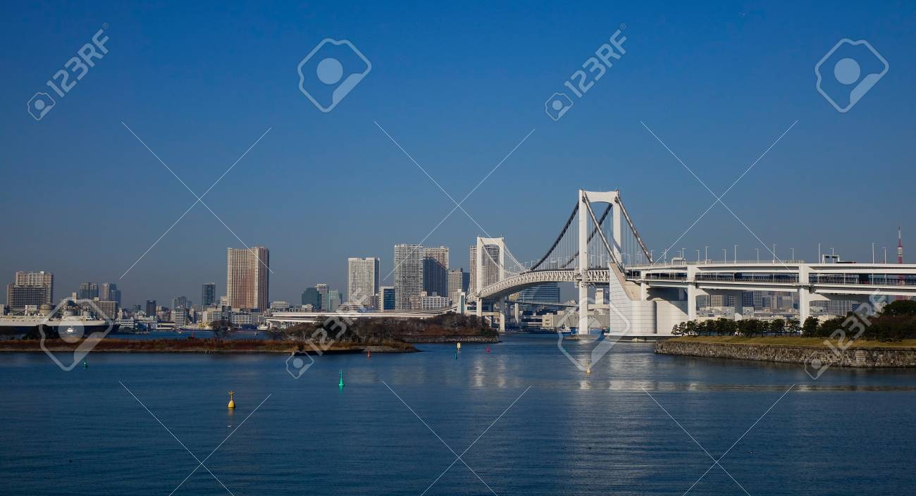Tokyo Bay With Rainbow Bridge In Odaiba City Skyline Stock Image Image Of Landmark Odaiba 123511711